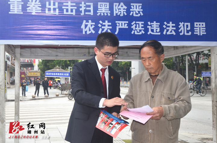 靖州新闻网·红网靖州站4月12日讯(分站记者 周悦伊 通讯员 舒鑫)为进一步提高市民对扫黑除恶专项斗争的认识,引导市民自觉遵法、守法、护法,4月12日,县人民检察院走上街头,开展扫黑除恶宣传活动。