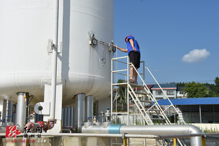 lng气站日常巡检中,工作人员检查储气罐液位压力情况 周悦伊 摄