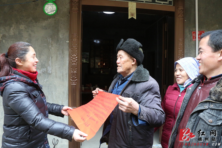 县610办干部吴文樱,拿着红包,提着牛奶、水果来到新厂镇地交村李德镜家。 何嫘 摄