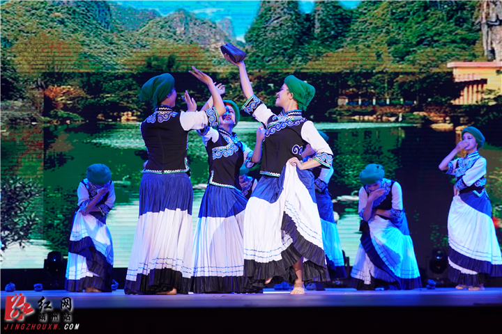 如舞蹈《情深谊长》讲述了习近平新时代中国特色社会主义思想被带到乡村,引导村民脱贫致富的故事,表达群众对党和政府为民务实的情怀。歌曲演唱《苗族歌鼟》将舞蹈、歌鼟等元素糅合,让大家在充分享受歌鼟艺术魅力的同时,感受了靖州县独特的民俗民情。