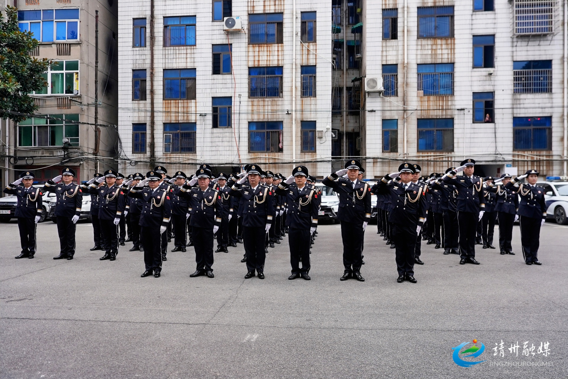 全体民警面向警旗敬礼(钦苏芬 摄)