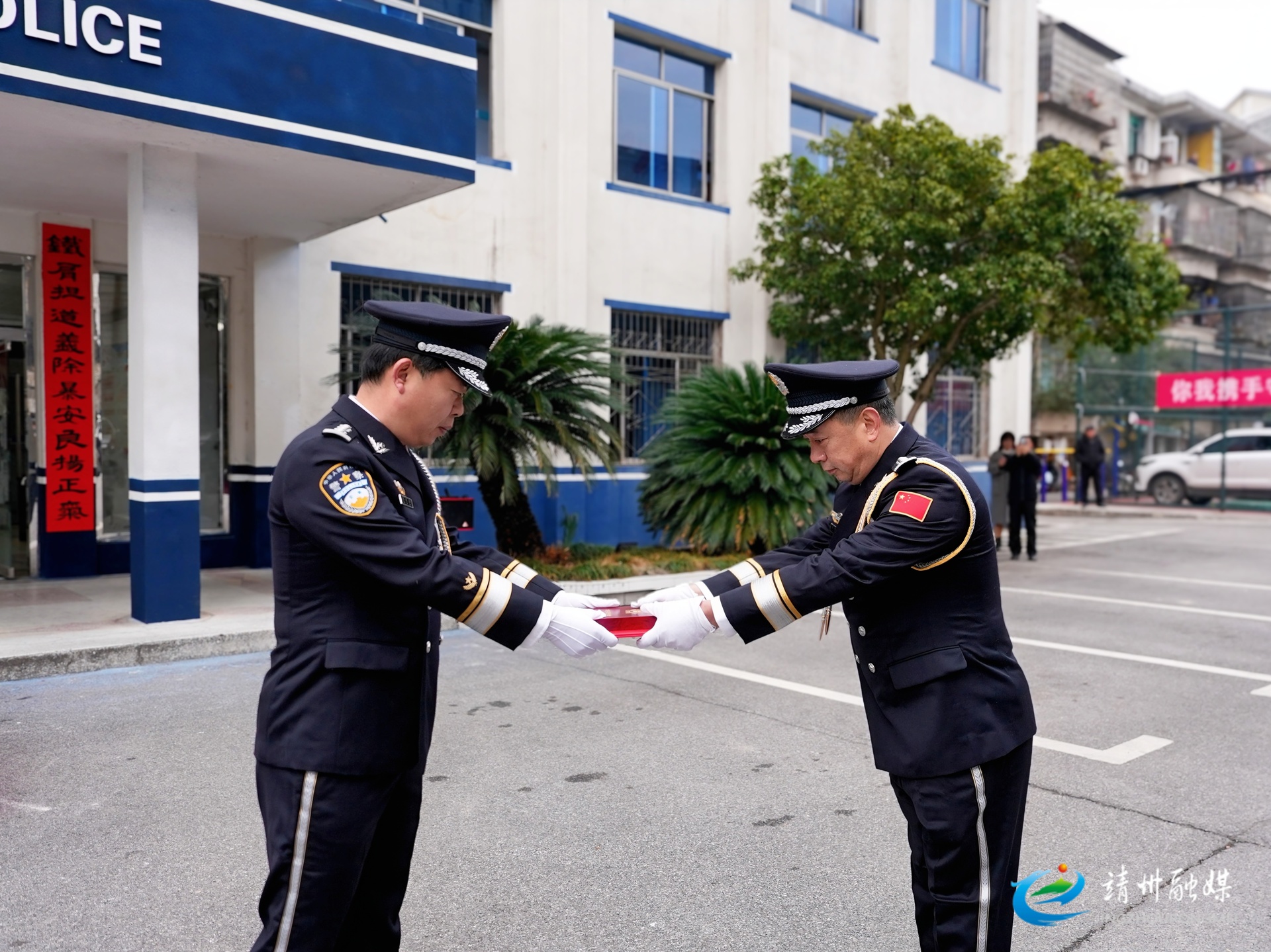 局领导还为从警满三十年的民警代表颁发荣誉章,金色奖章在阳光下熠熠生辉,见证着他们三十年的坚守与奉献。