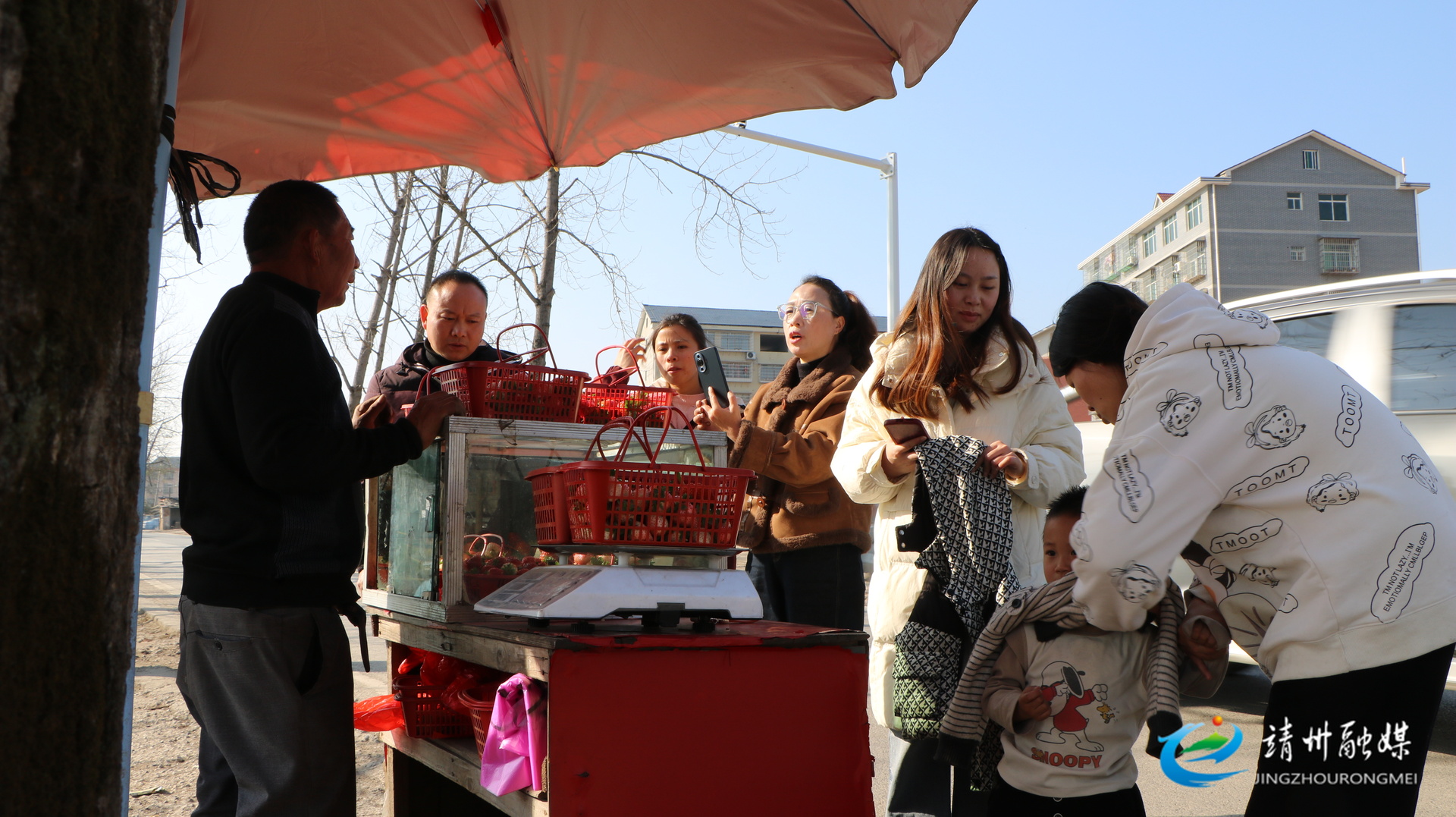 草莓园销售现场生意火爆(夏源懋 摄)