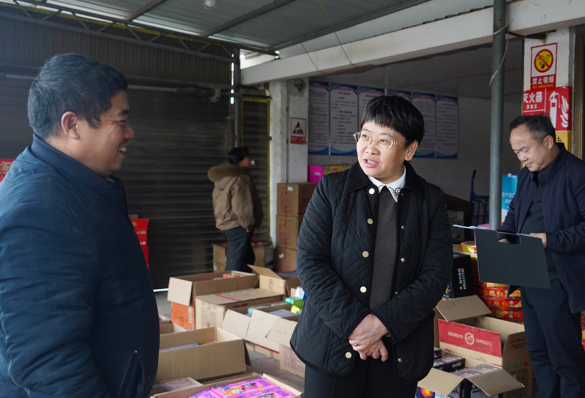 黄忆钢在烟花爆竹批发销售点督导检查安全生产、禁燃限放烟花爆竹等工作(蒲湘萍 摄)