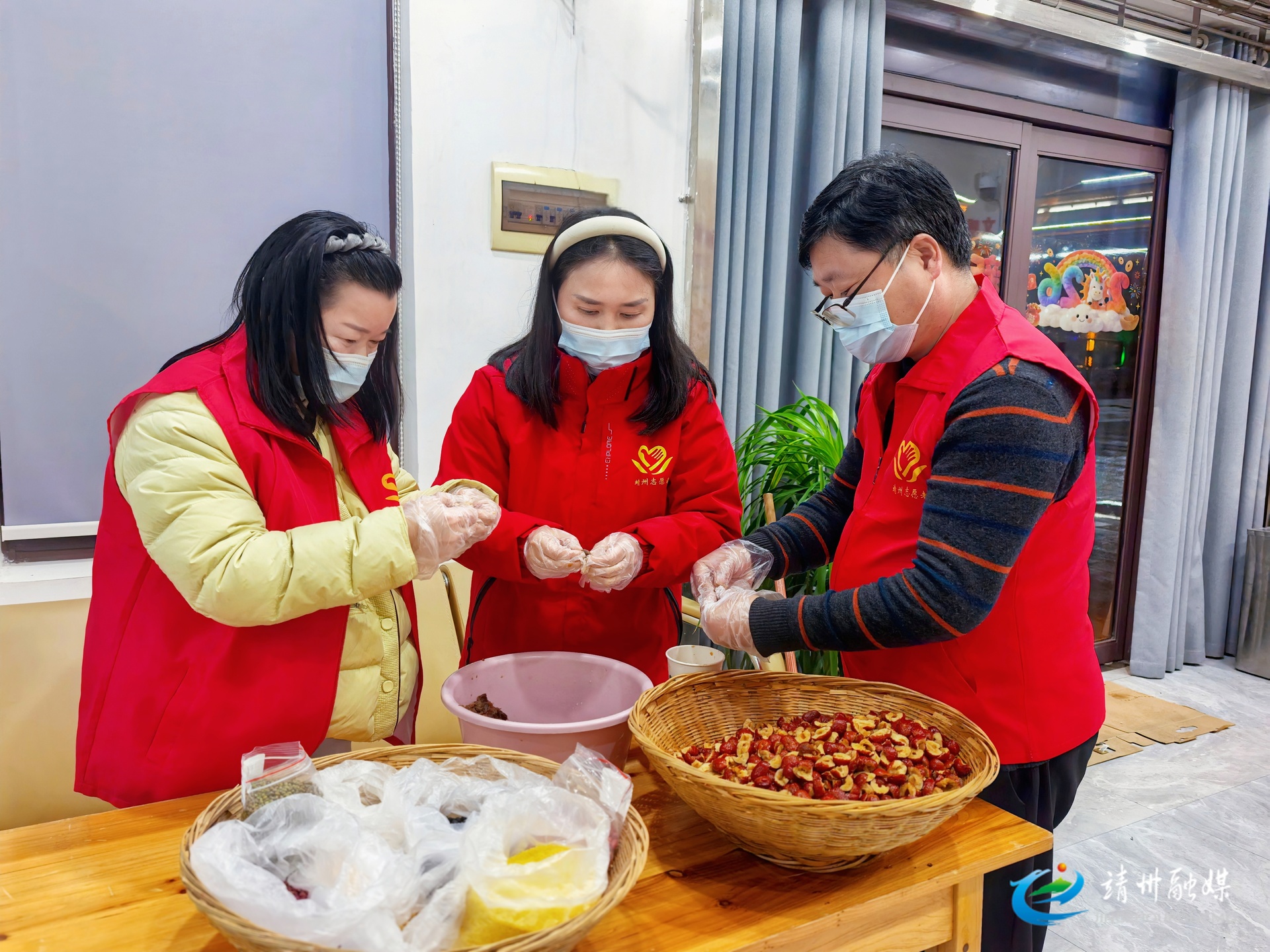 志愿者们正在准备熬腊八粥的食材(钦苏芬 摄)