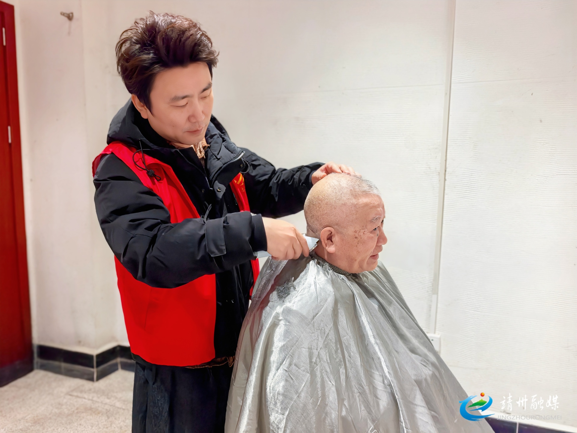 志愿者正在为老人义剪(钦苏芬 摄)