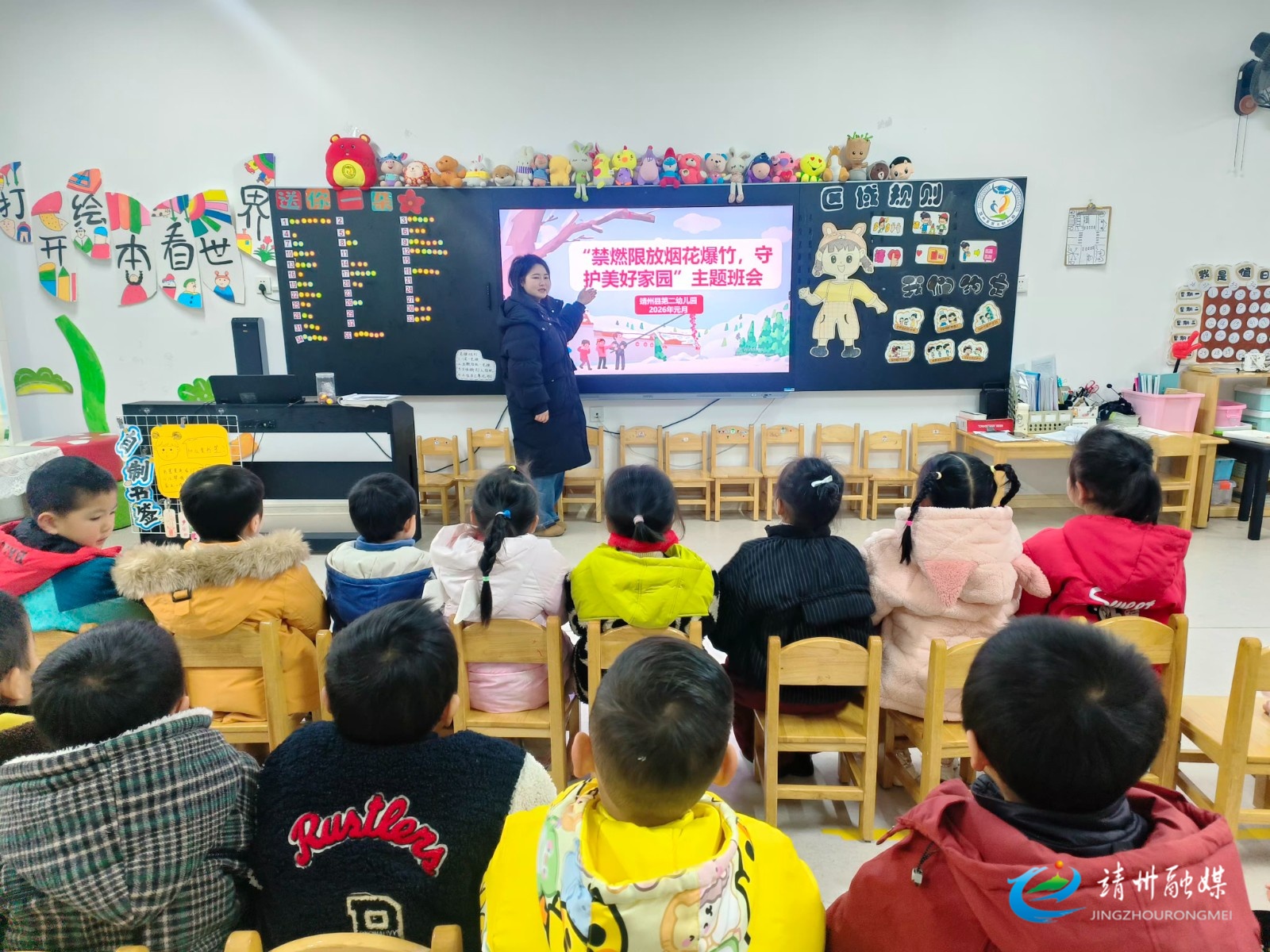靖州融媒1月21日讯(通讯员 刘毅 李欣玲)1月19日,靖州苗族侗族自治县第二幼儿园开展“禁燃限放烟花爆竹 守护美好家园”主题班会活动。