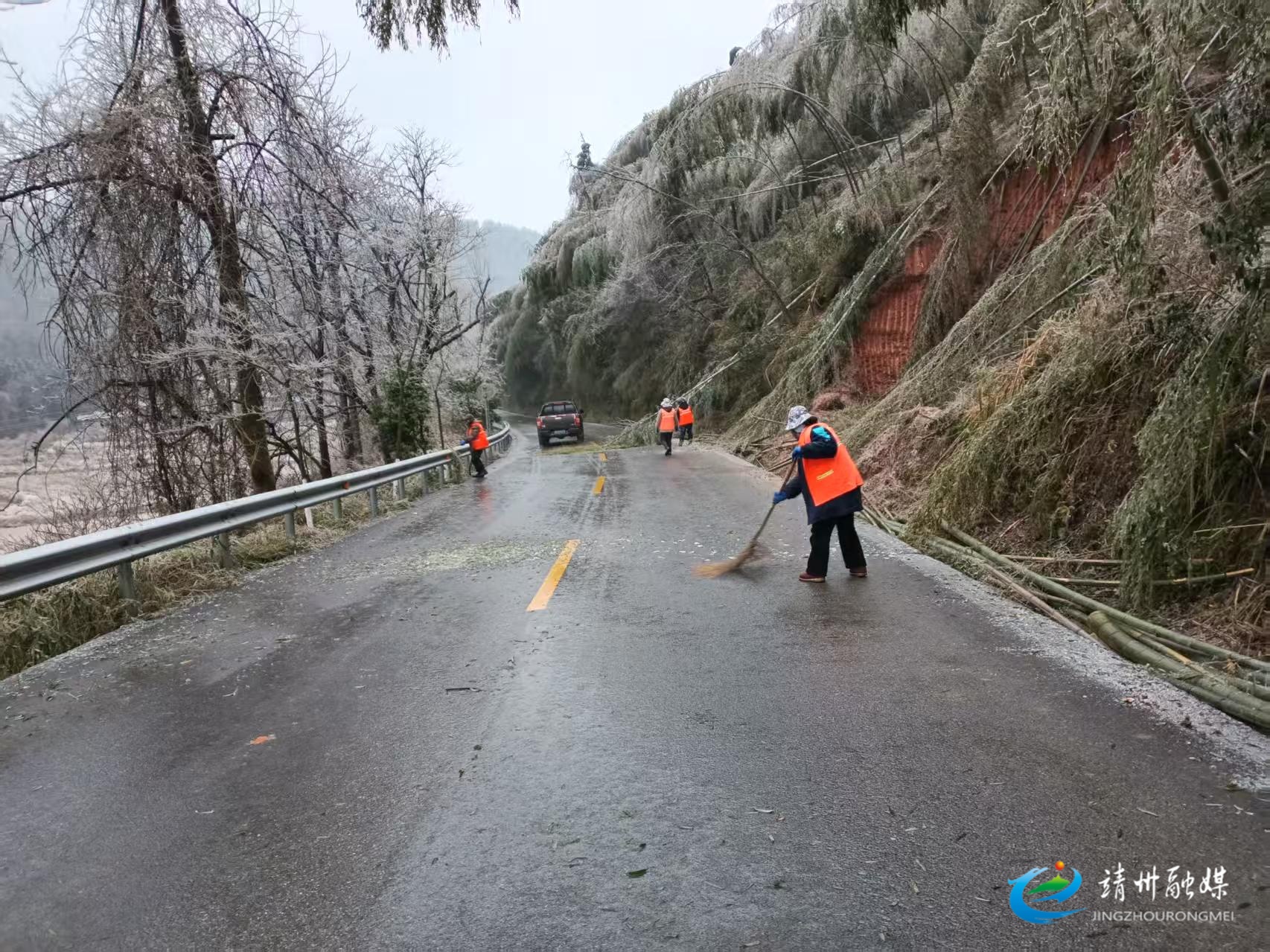靖州融媒1月21日讯(通讯员 王静 热娜古丽·阿不都拉)1月21日,靖州苗族侗族自治县公路建设养护中心接到群众反映,S249线腰古坡隧道路段因低温雨雪结冰,导致行道树及沿线竹林倒伏,阻碍车辆正常通行。