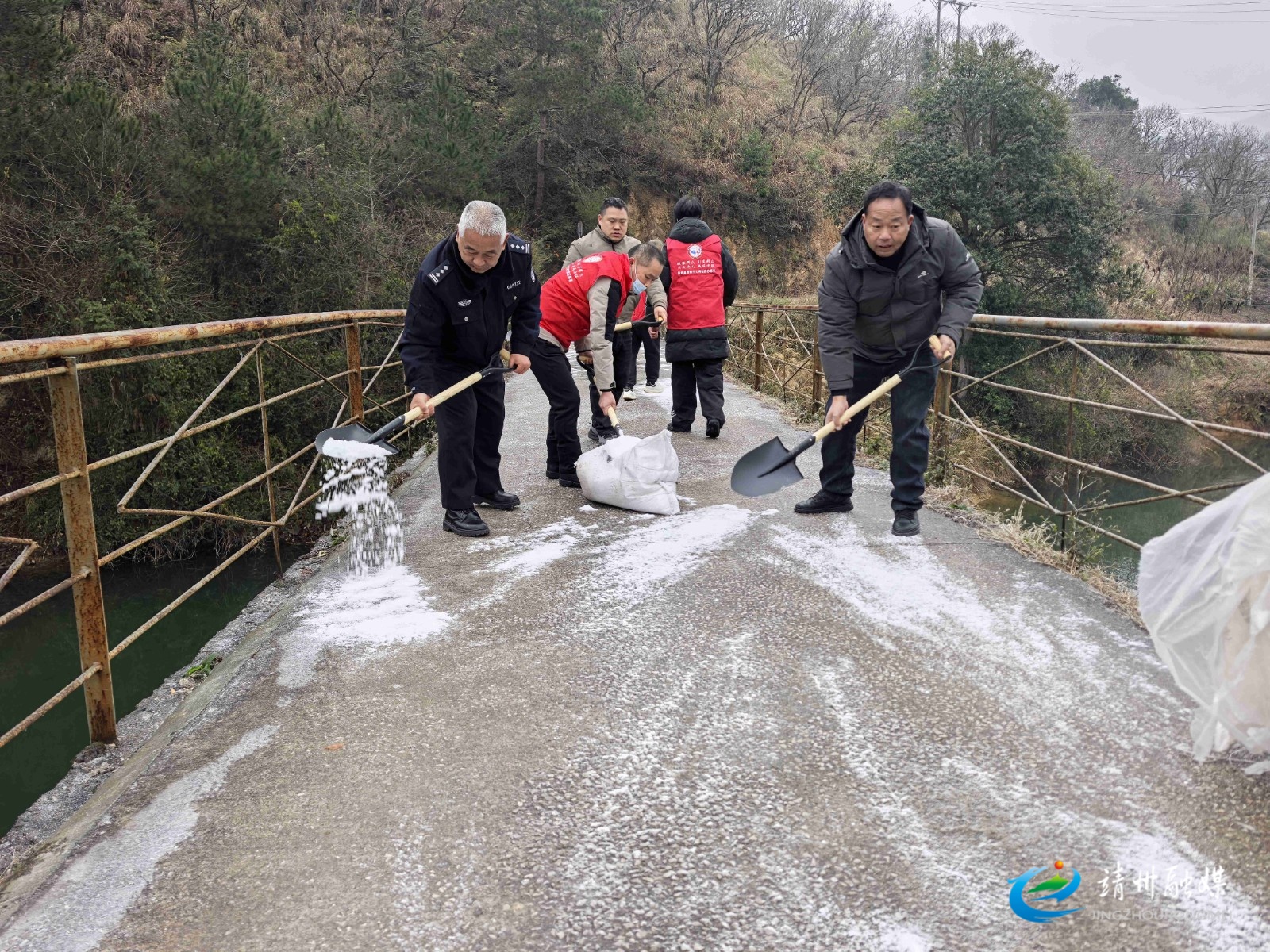靖州融媒1月21日讯(通讯员 顾安吉)1月21日,受低温天气影响,靖州苗族侗族自治县横江桥便民服务中心新江村新江桥桥面出现结冰,给村民出行带来安全隐患。该中心迅速行动,携带工业盐、铁锹等赶赴现场开展除冰作业。