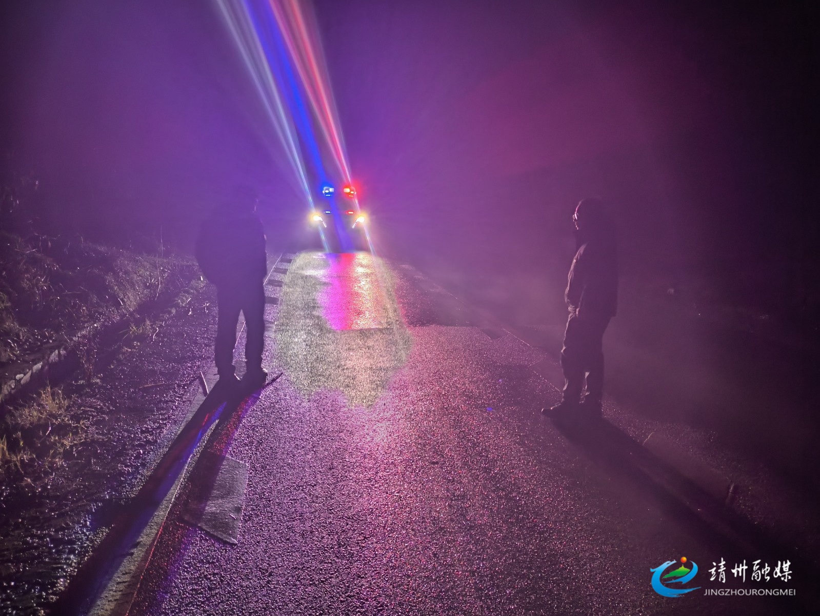 凌晨,大堡子镇政府与派出所联动协作,前往重点路段查看路面结冰情况 (张珺 摄)