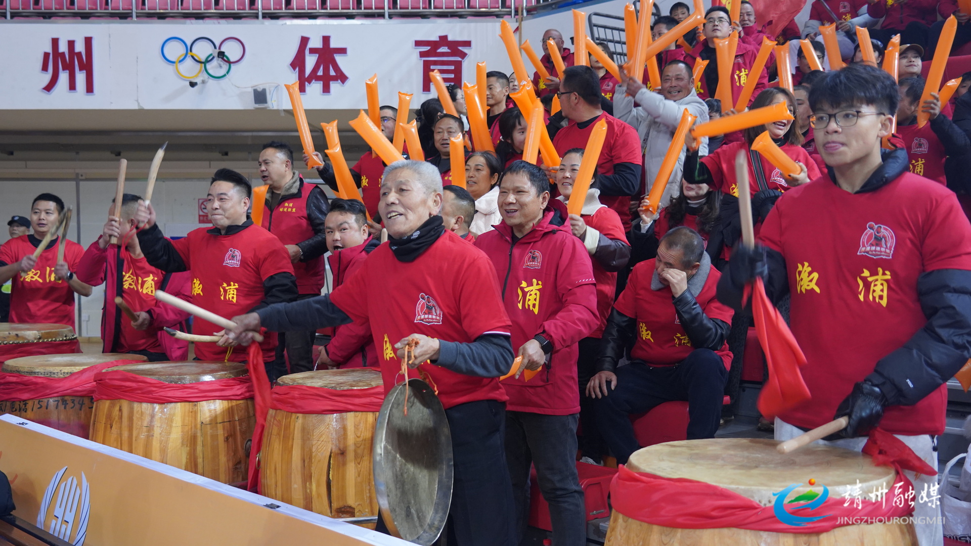 溆浦队球迷敲锣打鼓强势助阵(蒲湘萍 摄)