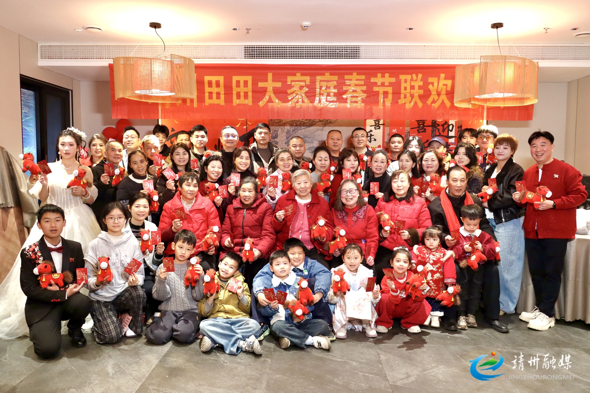靖州融媒2月16日讯(记者 张秦 许梦娟 陈俊名)除夕良辰,暖意盈厅。2月16日,2026年靖州苗族侗族自治县田田大家庭春节联欢晚会在利顿大酒店宴会厅温馨启幕,52名家族成员从五湖四海赶来,四代同堂齐聚首,在温馨氛围中,定格马年新春最温暖的团圆记忆。