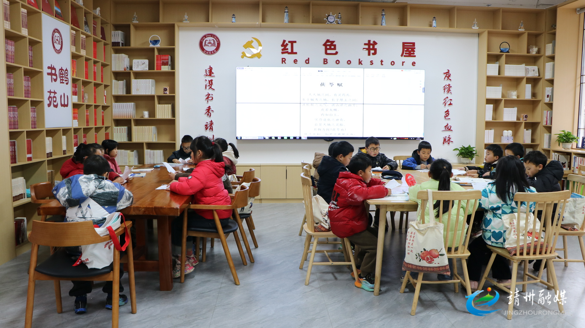 鹤山书院寒假公益托管班的学生齐声朗读《茯苓赋》(夏源懋 摄)