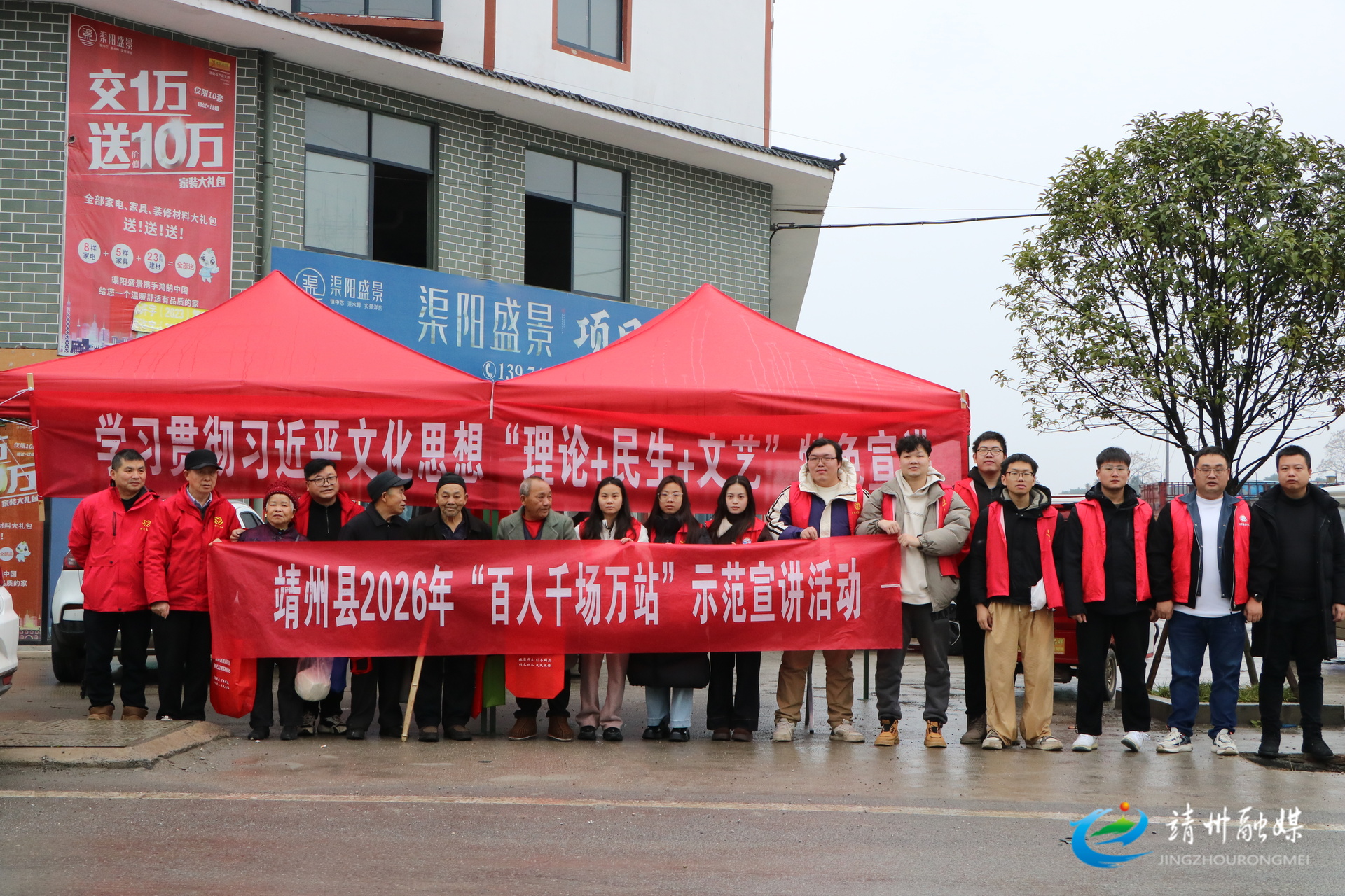 靖州融媒2月12日讯(记者 夏源懋 通讯员 秦明)2月12日,靖州苗族侗族自治县2026年党的创新理论“百人千场进万站”示范宣讲活动走进太阳坪乡集镇,以“宣讲+服务”形式,推动党的创新理论和文明新风在基层落地生根。