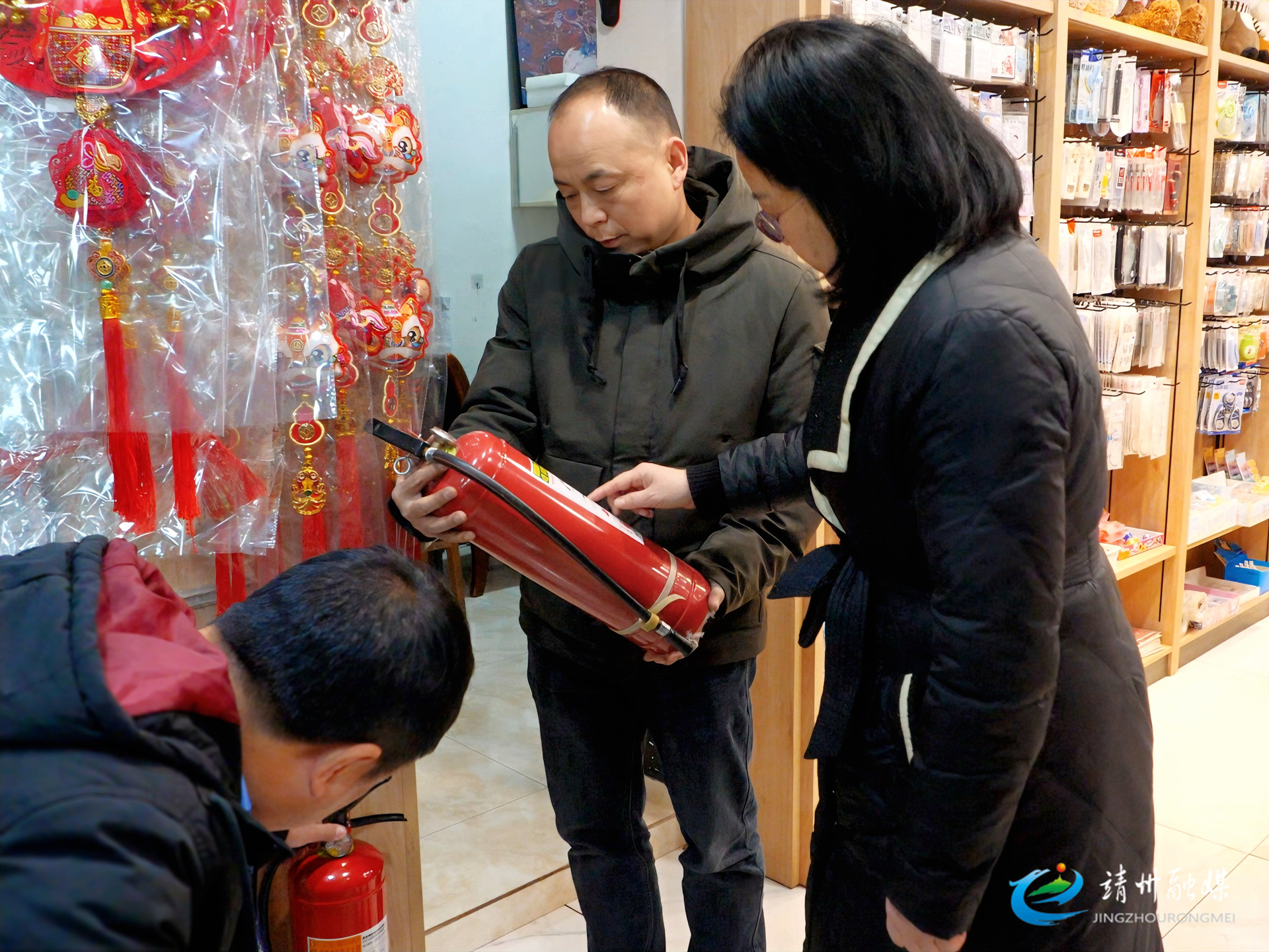 工作人员在求索书店对消防设施进行检查(孙文月 摄)
