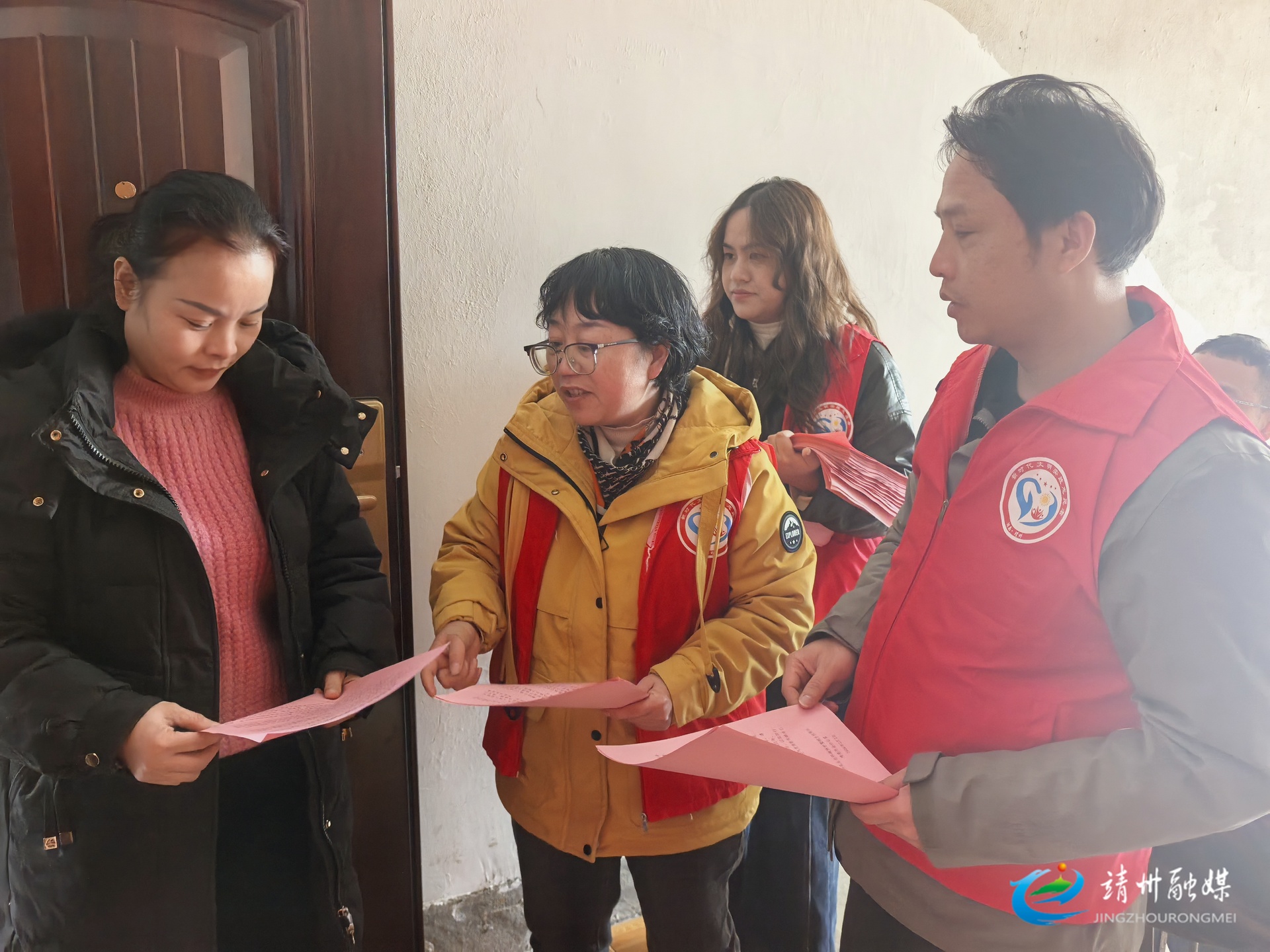 怀化市生态环境局靖州分局工作人员正上门进行禁燃禁放宣传(钦苏芬 摄)