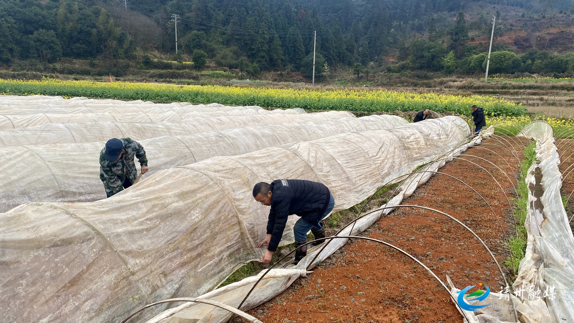 为杨梅新芽盖棚(张秦 摄)