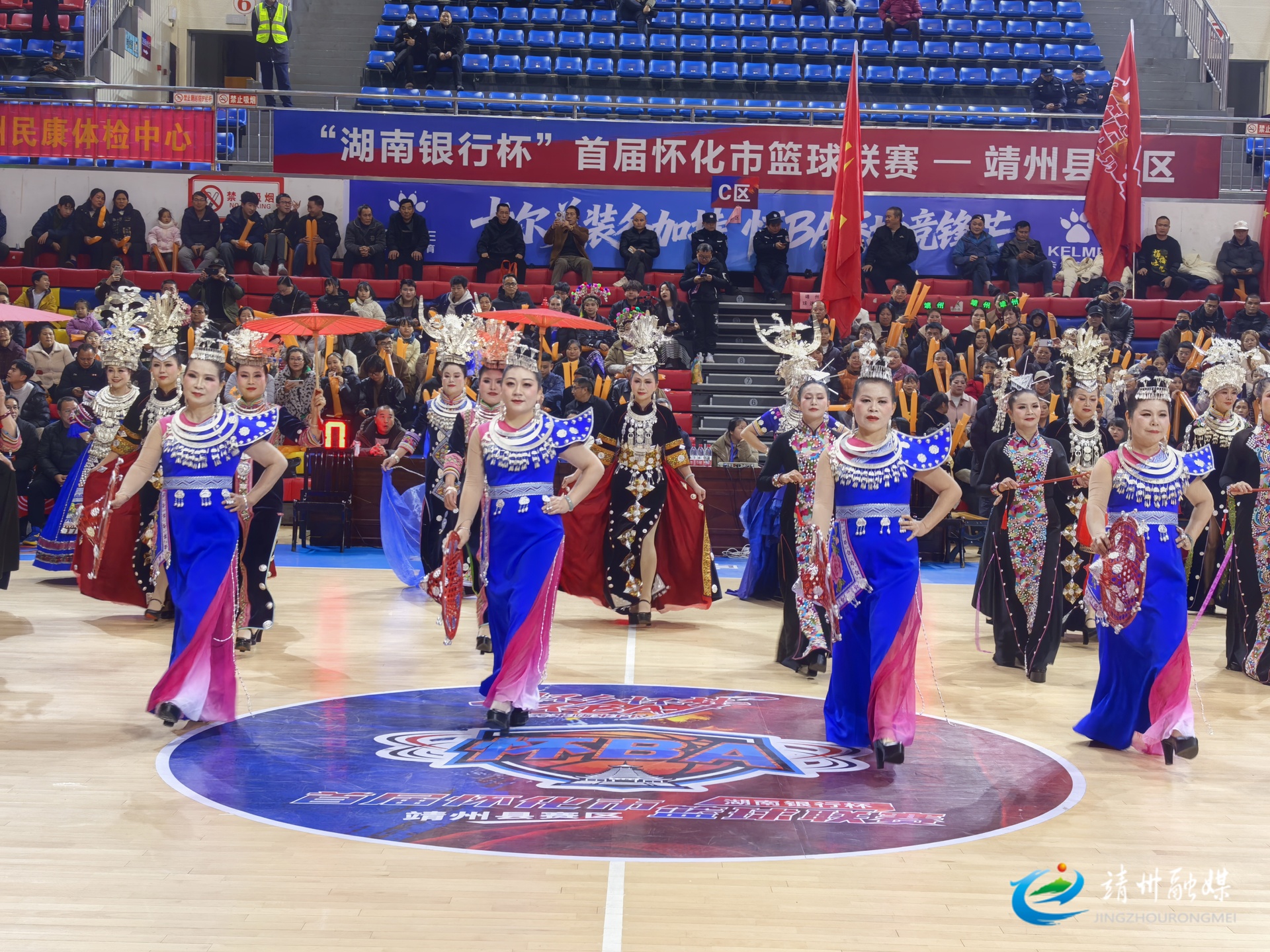 在靖州民族体育馆,赛前舞蹈《福地漫游》灵动登场,时尚民族风走秀惊艳亮相,浓郁的民族风情点燃赛场氛围,民族文化与体育精神完美交融。比赛开始后,通道队率先发力,连续命中三记三分球取得领先。靖州队迅速调整状态,稳扎稳打将比分追平,双方随即展开激烈拉锯,比分交替上升、悬念迭起。
