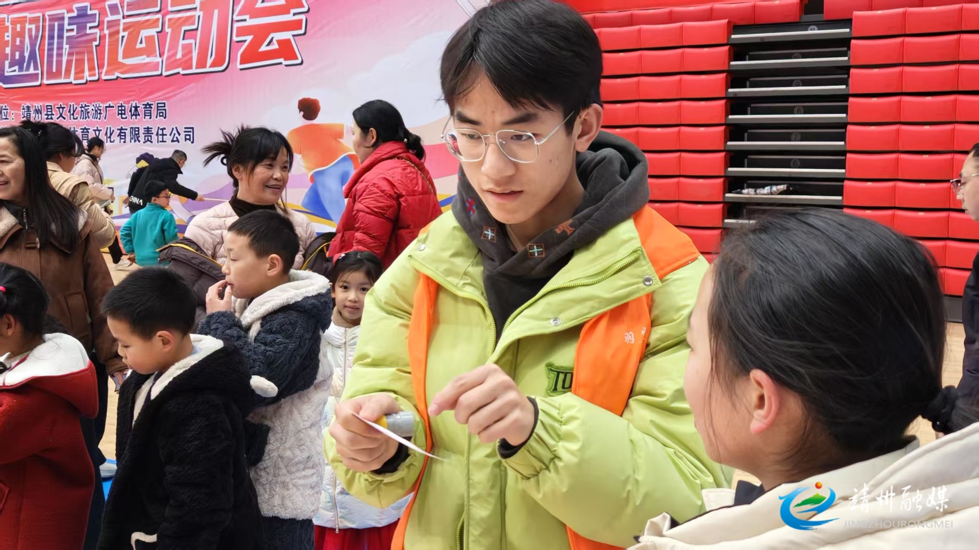 靖州融媒2月19日讯(记者 刘昊)2月19日,靖州苗族侗族自治县民族体育馆内洋溢着浓郁的新春气息,2026年新春趣味运动会正火热开展。来自全县各地的家庭欢聚于此,以趣味运动解锁新年团圆新方式,现场处处洋溢着欢声笑语。