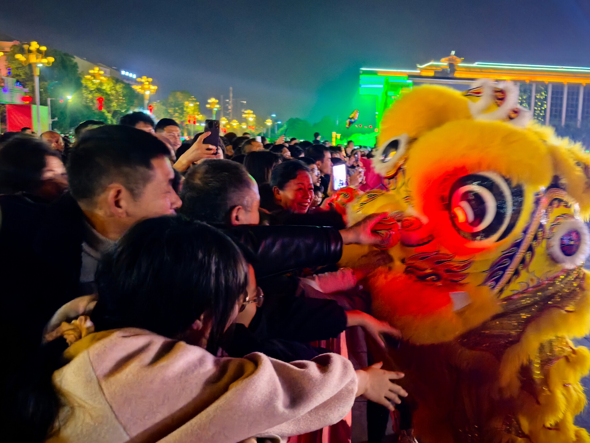 活动现场锣鼓喧天、人头攒动,舞龙舞狮队伍依次登场。多条民俗龙队伴着铿锵锣鼓,灵活完成盘旋、腾跃、穿梭等动作,龙身舒展、气势昂扬;舞狮队伍精准演绎桩跳跃、高杆采青、狮子滚球等经典桥段,动作利落、神态灵动。市民与小朋友纷纷与醒狮互动祈福,现场欢声笑语不断,观众们驻足观看、用手机记录精彩瞬间,整场活动互动热烈、秩序井然。