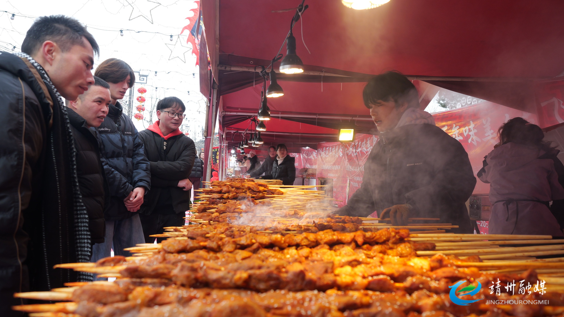游客在飞山款文化广场等待美食出炉(明睿 供图)