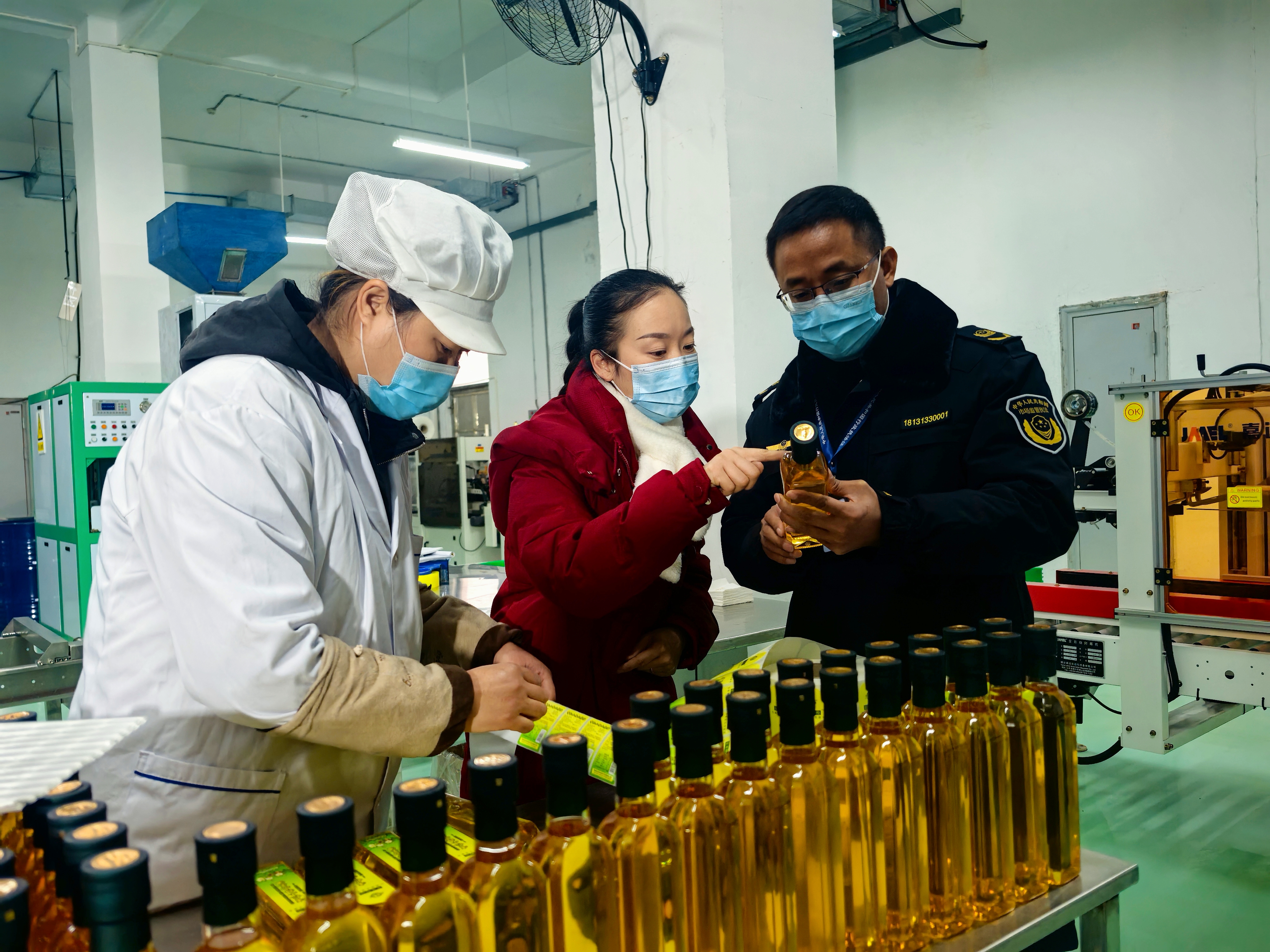 “你们稻谷采购回来之后,有没有进行检测?”当日,检查组先后前往振宏米业、国苓食品、金茶油等食品生产企业,依据《中华人民共和国食品安全法》《食品安全国家标准 食品生产通用卫生规范》等法律法规要求,开展全流程核查。检查人员重点查验企业食品生产许可证、从业人员健康证明等资质文件,核对原料采购台账、索证索票等溯源资料,确保源头可溯、风险可控。同时,实地检查生产设备运行、现场环境卫生及工艺流程规范度等情况,全方位筑牢质量安全屏障。
