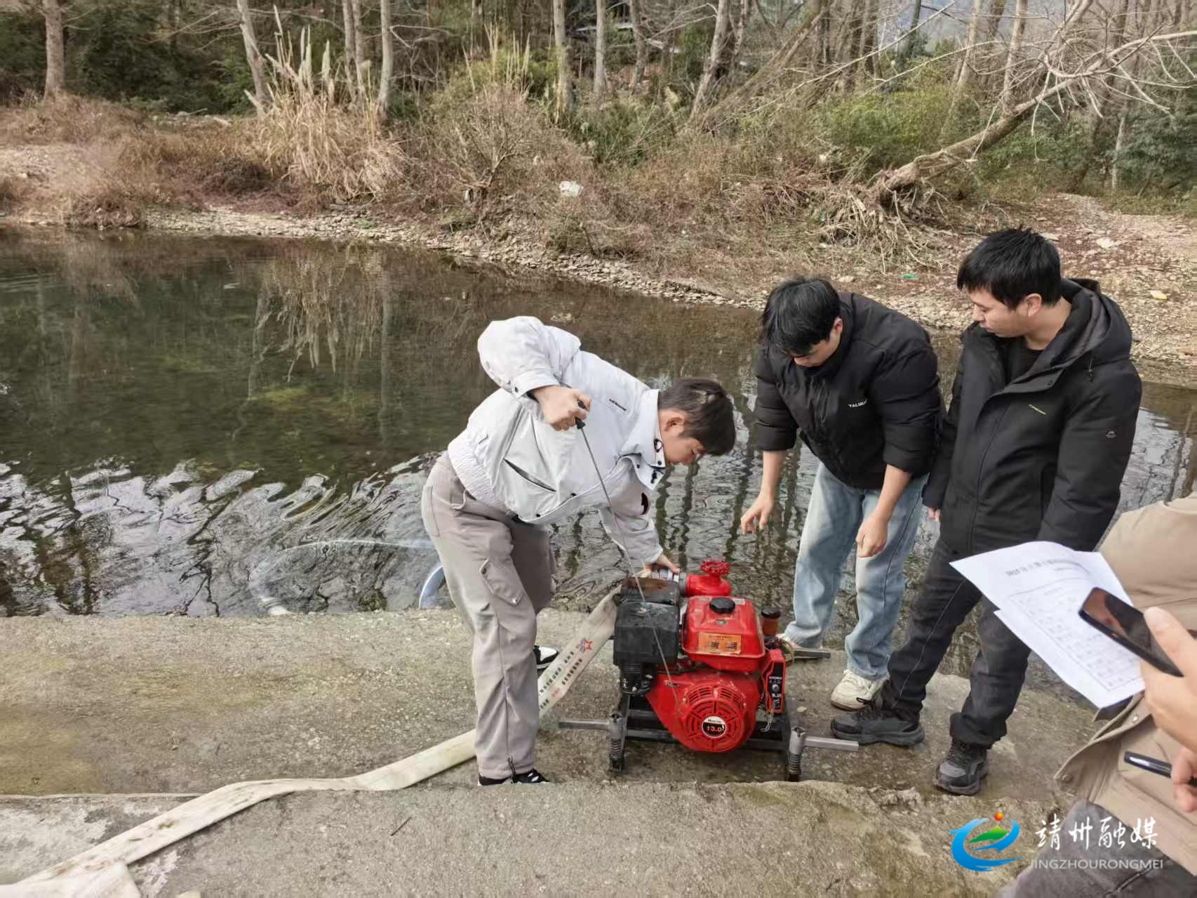 活动坚持实操实战导向,工作人员先现场演示机动泵组装、启动、供水等关键步骤,重点讲解冬季低温环境下设备防冻技巧及规范操作的要点。随后,镇政府干部分组开展实操速度比拼,各组分工协作、规范操作、奋勇争先,充分展现出务实担当的良好作风。