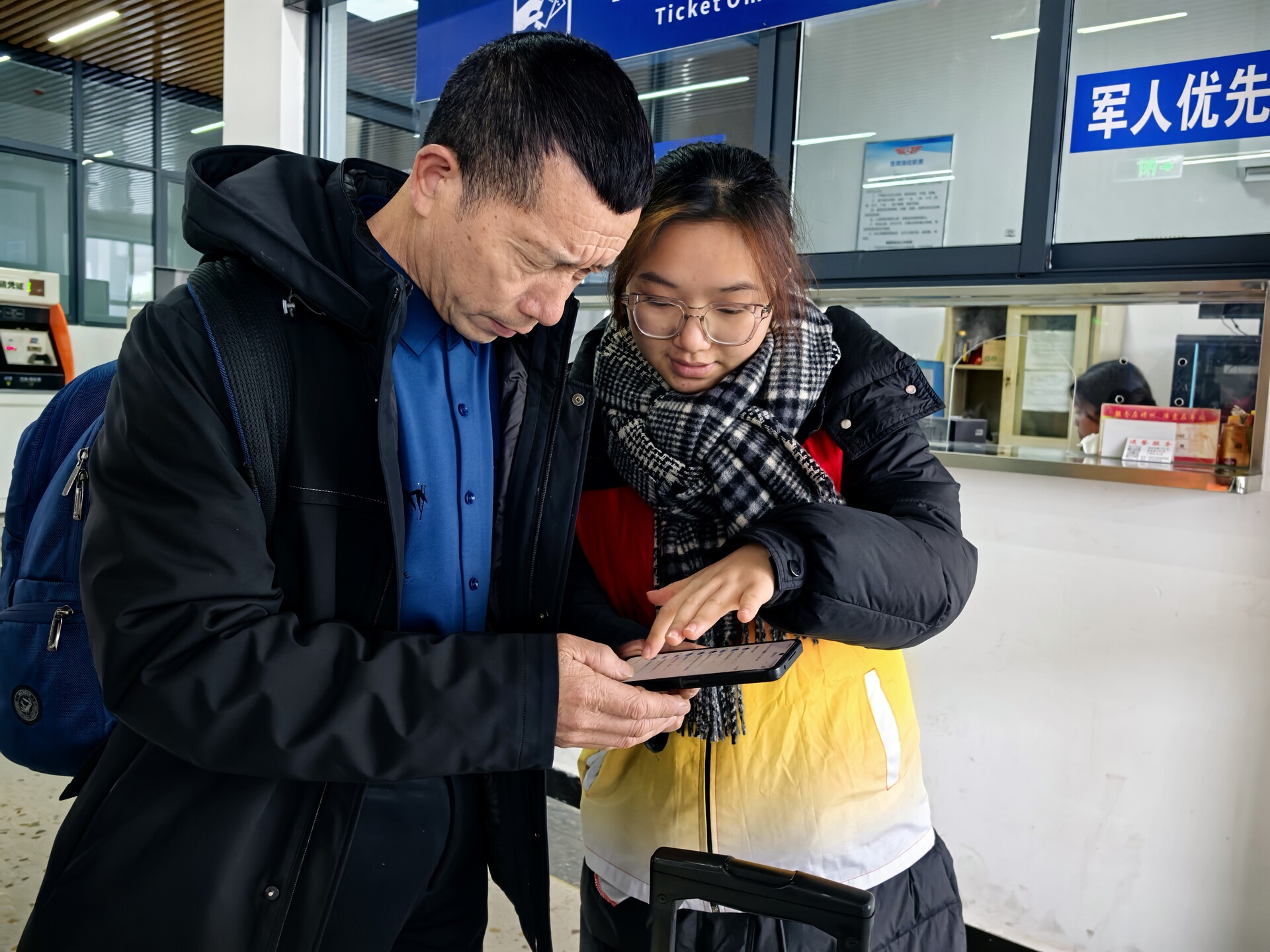上午8点刚过,志愿者们便在进站口、售票厅、候车室、检票口等关键区域各就各位,大家按照职责分工,有条不紊地开展引导咨询、秩序维护、重点旅客帮扶等志愿服务。售票大厅内,面对智能购票机前驻足的旅客,志愿者主动上前手把手指导操作流程,细致核对车次与时间,尤其为不熟悉智能设备的中老年旅客排忧解难。一句句耐心解答、一次次细致指引,让旅客的出行路少了焦虑、多了顺畅。