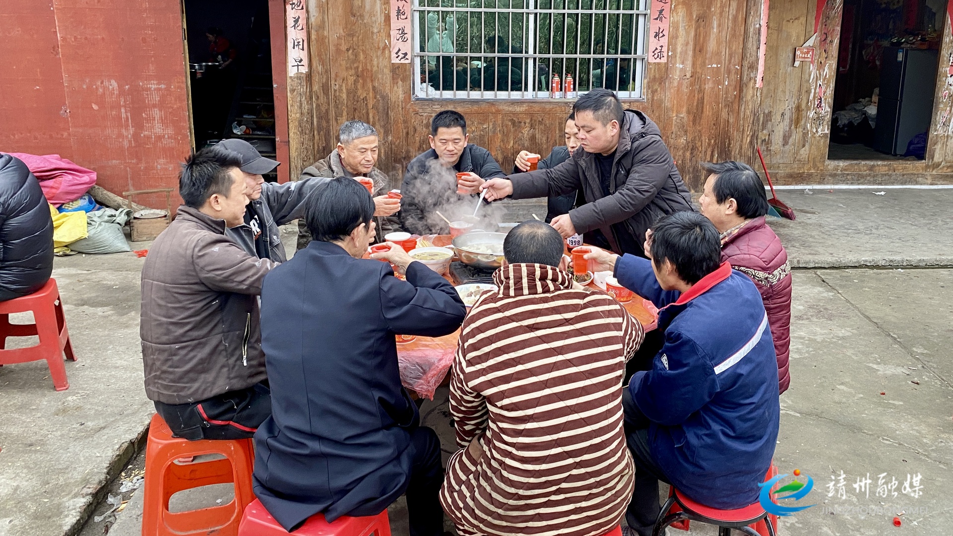 清晨,庭院内早已忙碌起来,柴火灶火势正旺,装满水的大铁锅热气升腾,各项准备工作就绪,只待亲朋好友陆续到来。