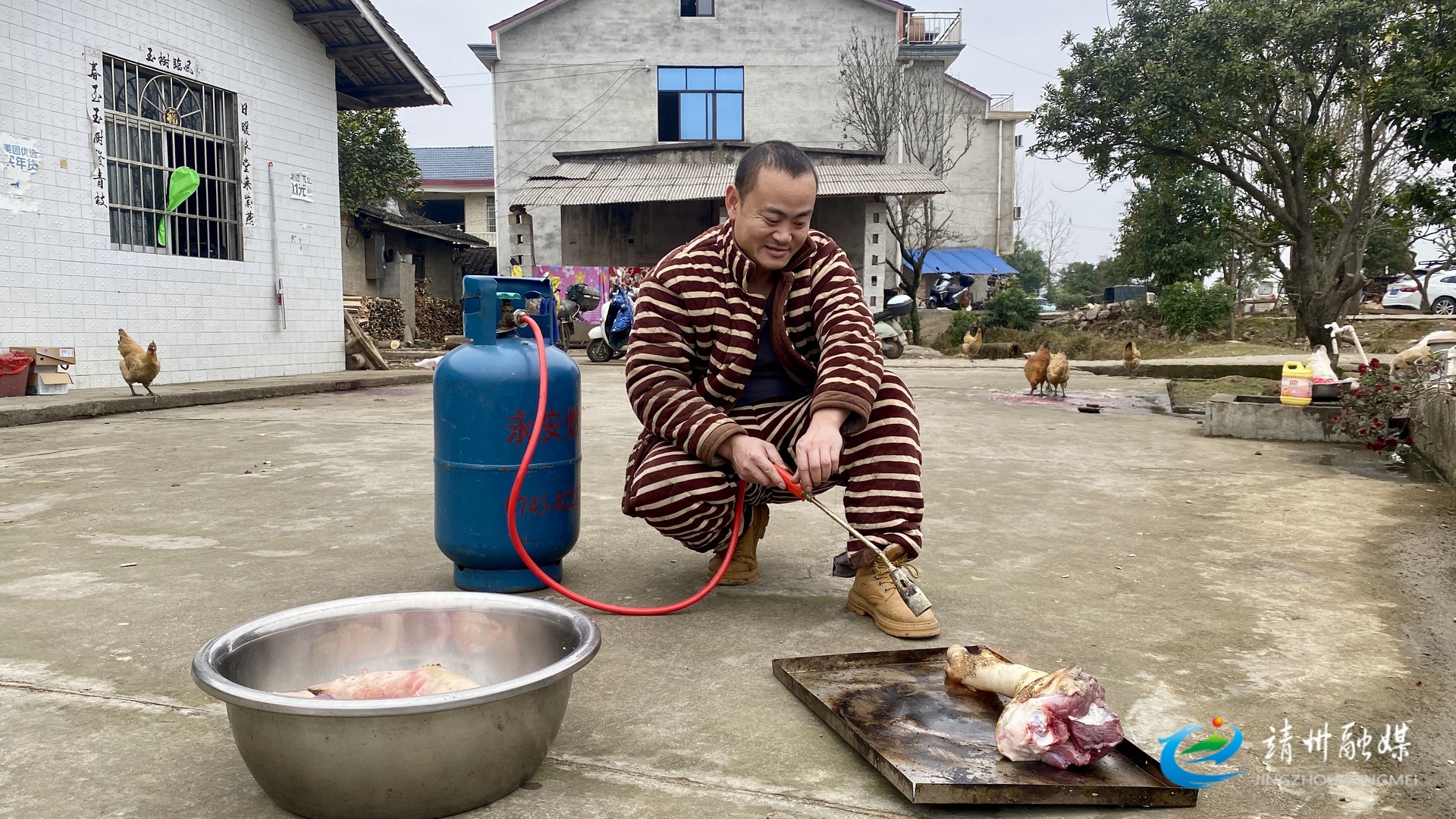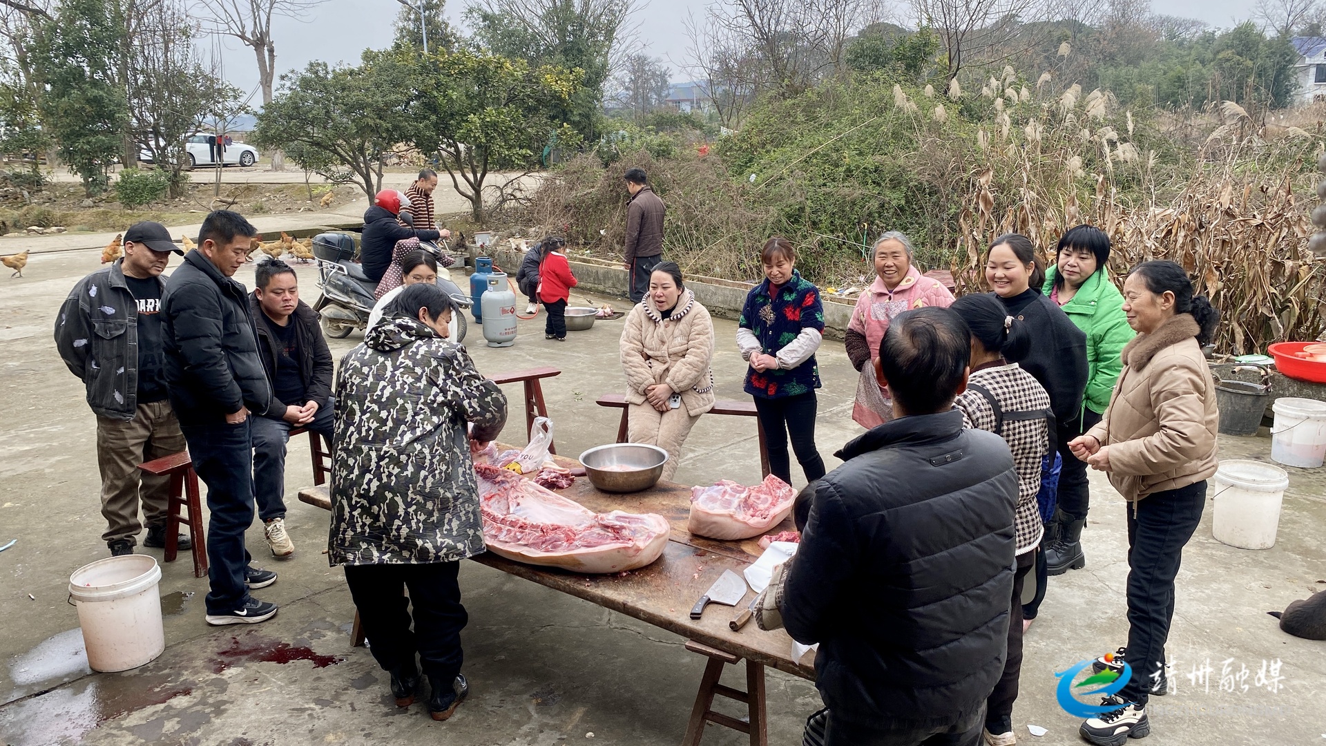 靖州融媒2月3日讯(记者 张秦)新春将至,年味渐浓。2月3日,靖州苗族侗族自治县艮山口便民服务中心三里村郭世春、张娟夫妇家的庭院里暖意融融,一场热闹的杀年猪民俗活动有序开展,亲友欢聚,肉香四溢,用最质朴的方式勾勒出浓厚年味,凝聚着团圆温情。