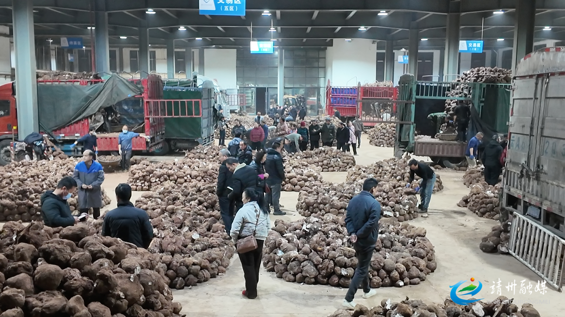 凌晨5点20分,靖州茯苓贸易大市场灯火通明已然开市(禹宇 摄)