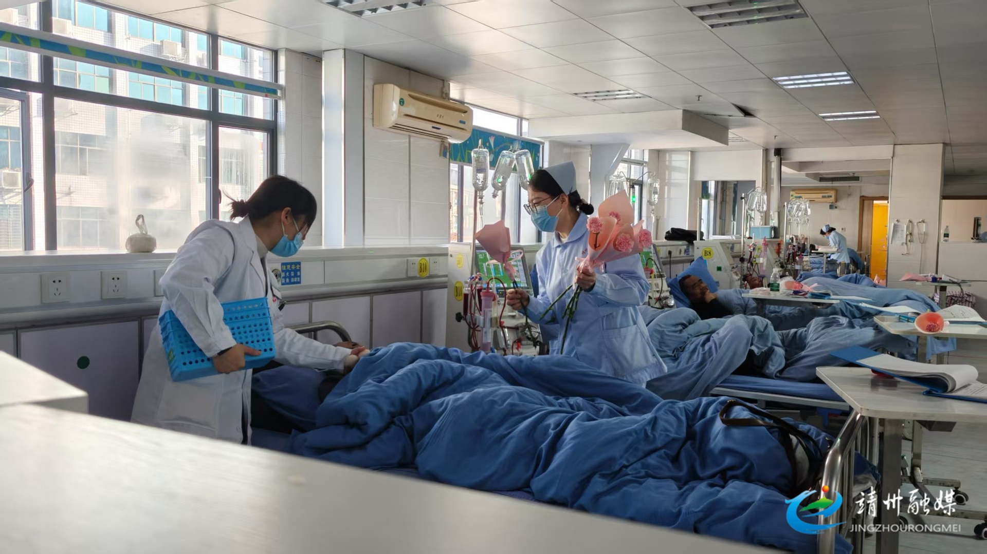 此次活动聚焦透析患者身心需求,医护人员为患者送上康乃馨和鸡蛋,提醒患者食用鸡蛋只需食用蛋清部分。同时,向患者及家属讲解血管通路保护、心理调节技巧,缓解患者身心压力,传递科学护肾理念,拉近医患距离。