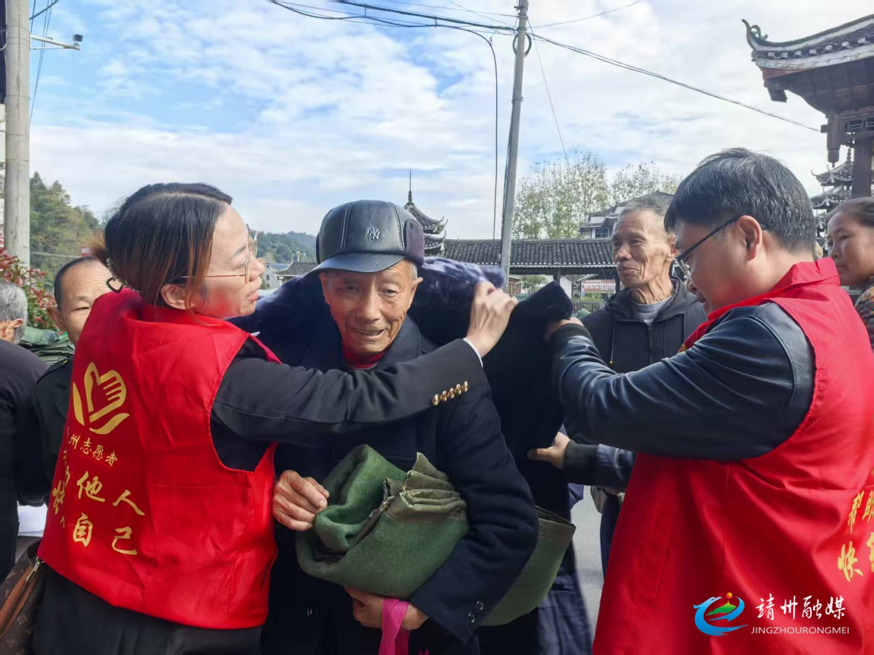 秦明正在帮老人试穿新衣服(钦苏芬 摄)
