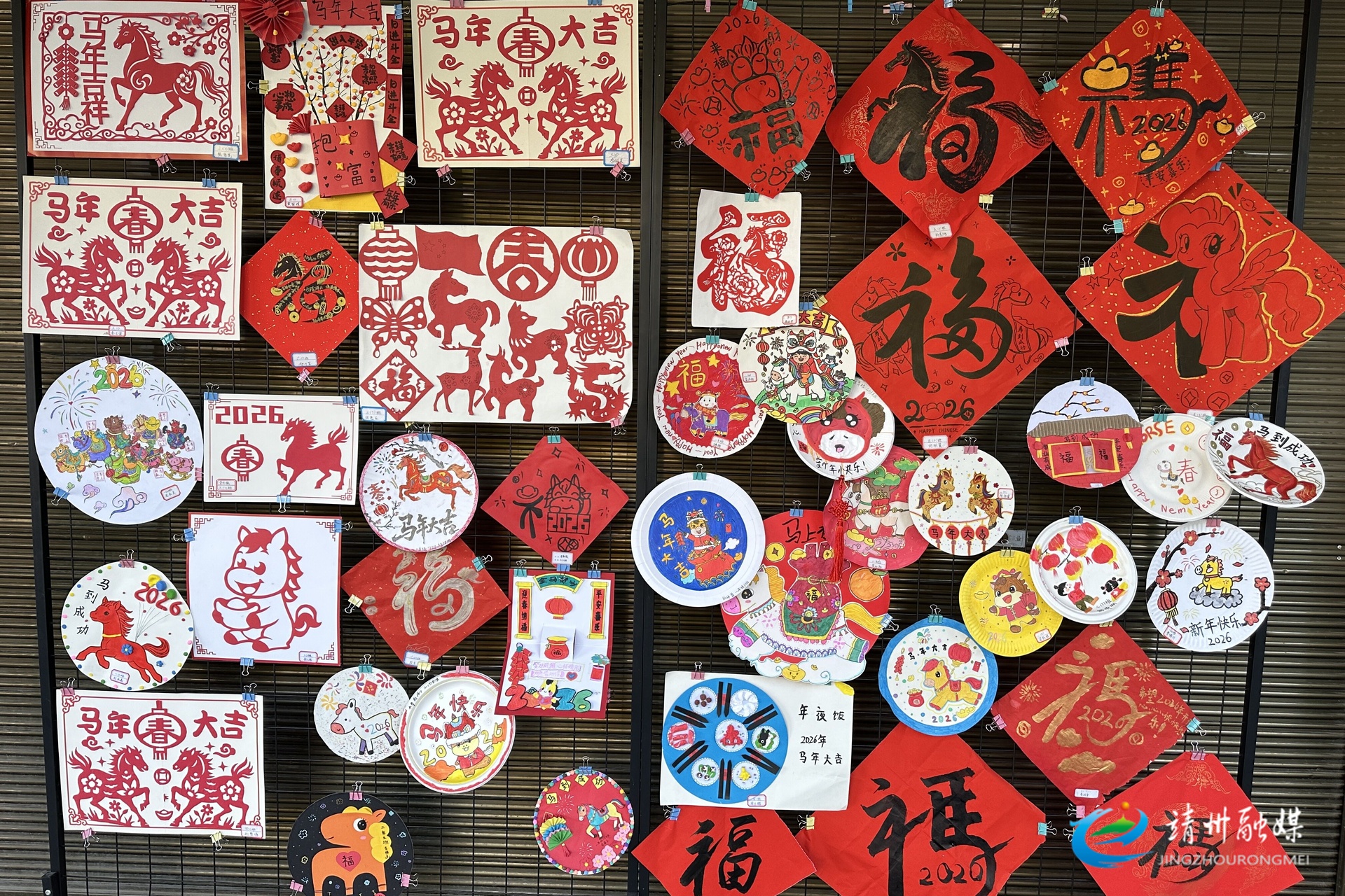 本次展览精选学生创作的剪纸、书法、创意手绘等作品,紧扣“马年”与传统文化主题,形式多样、童趣盎然。其中,骏马剪纸灵动传神,福字书法笔力初成,创意圆盘画色彩斑斓,集中展现了学生丰富的想象力与动手能力。