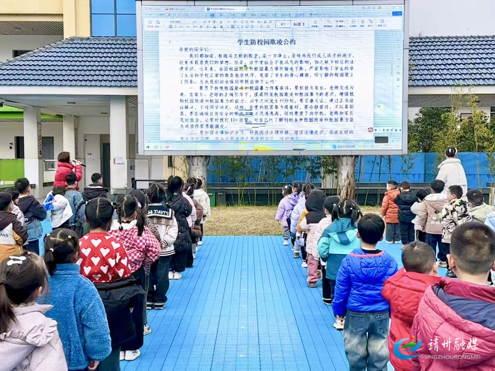 师幼共同宣读《学生防校园欺凌公约》(石归荣 供图)