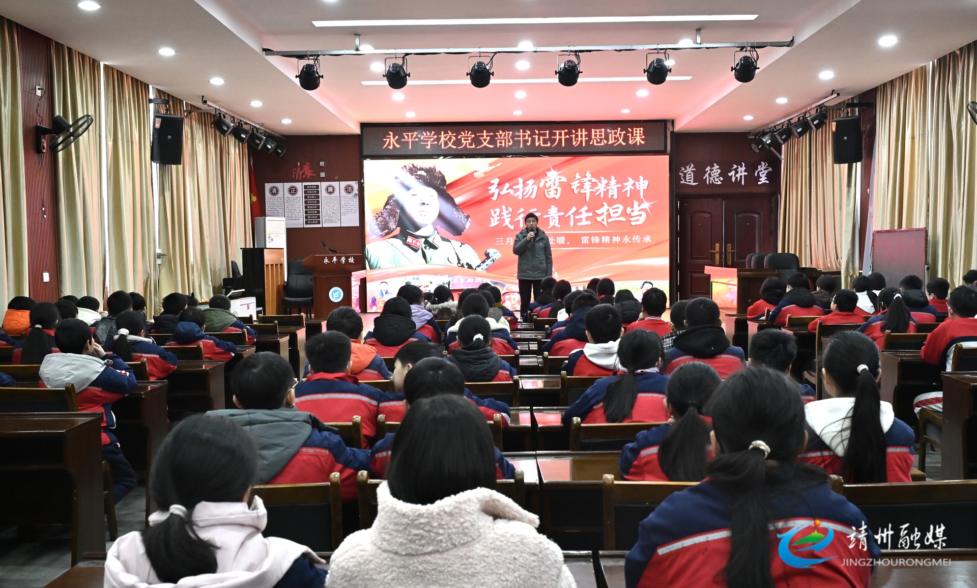 靖州融媒3月24日讯(通讯员 赵婷 莫林燕)3月24日,靖州苗族侗族自治县永平学校开展“弘扬雷锋精神践行担当责任”思政课,共108名师生参加。