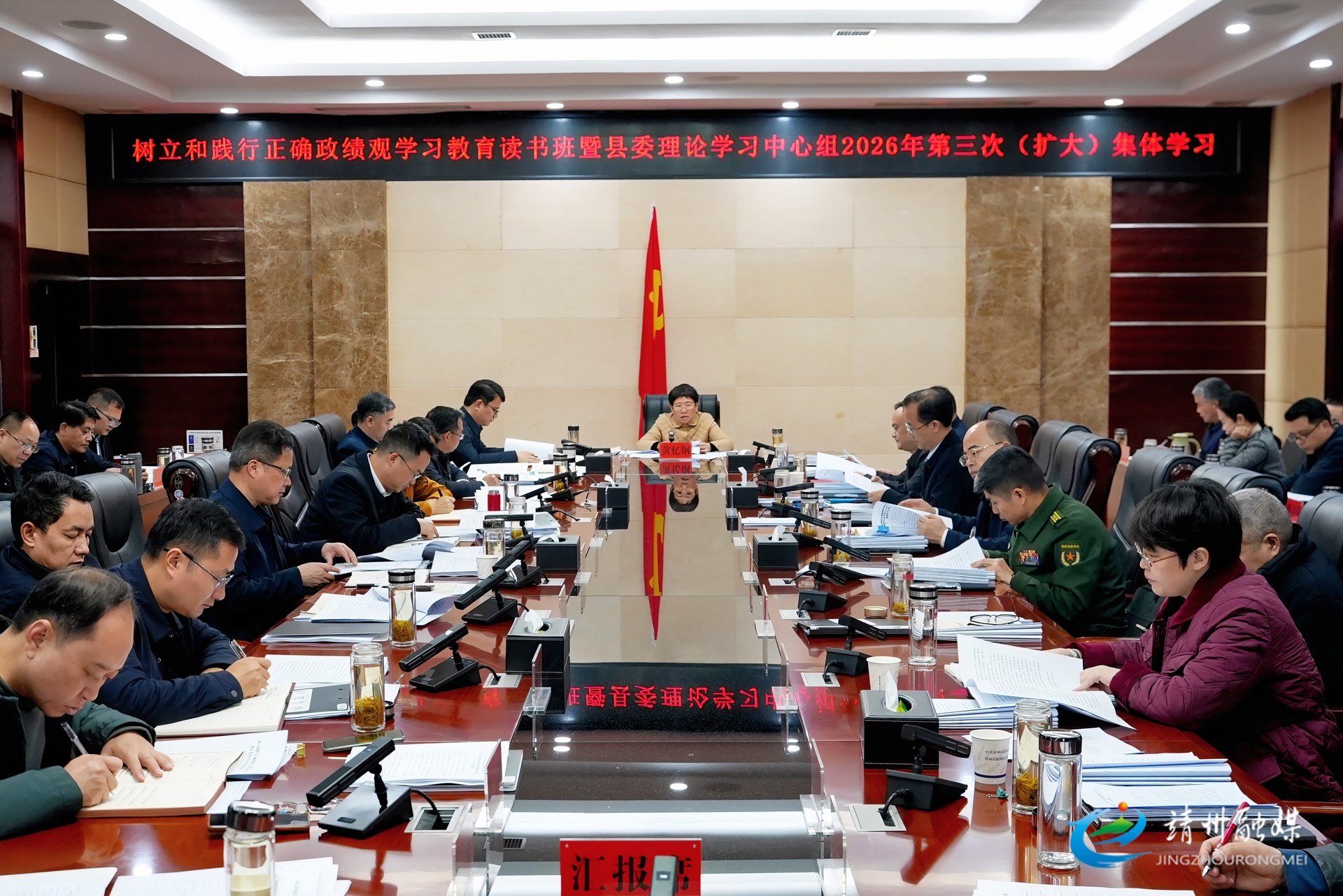 靖州融媒3月20日讯(记者 胡耀文 钦苏芬)3月20日,靖州苗族侗族自治县委书记黄忆钢主持树立和践行正确政绩观学习教育读书班暨县委理论学习中心组2026年第三次(扩大)集体学习,强调要深入学习贯彻习近平总书记关于树立和践行正确政绩观的重要论述精神,以深学细悟筑牢思想根基,推动学习教育走深走实,奋力谱写县域经济社会高质量发展新篇章。县委副书记、县长张艳阳,县委副书记、统战部部长赵俊,县人大常委会主任杨景明,县政协主席姜小华,县领导田锋、张长江、杨晓华、易美霞、刘绍有、罗学贤、许洪根作交流发言。