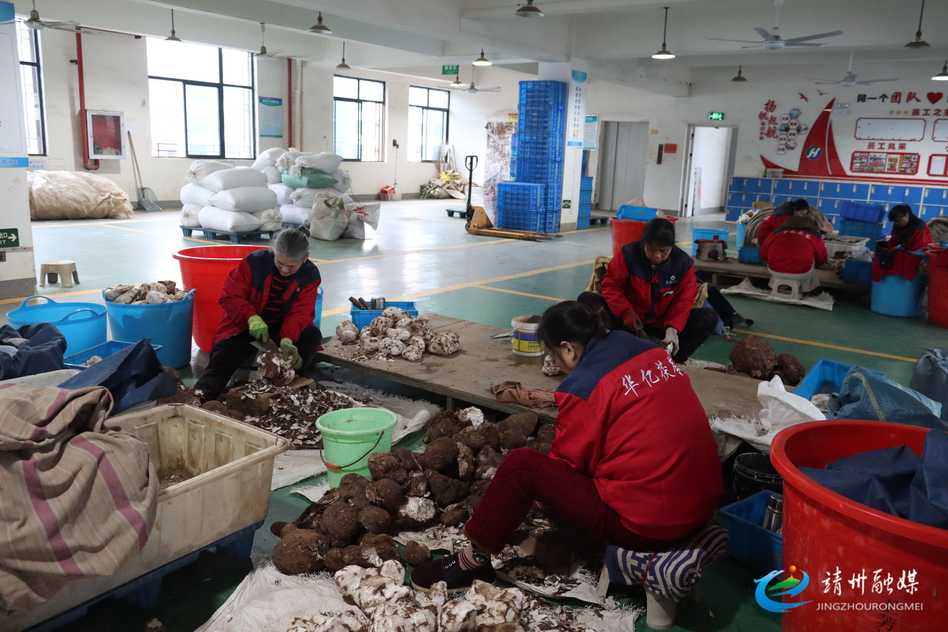 靖州华亿茯苓科技有限公司的茯苓工们正在削茯苓(许梦娟 摄)