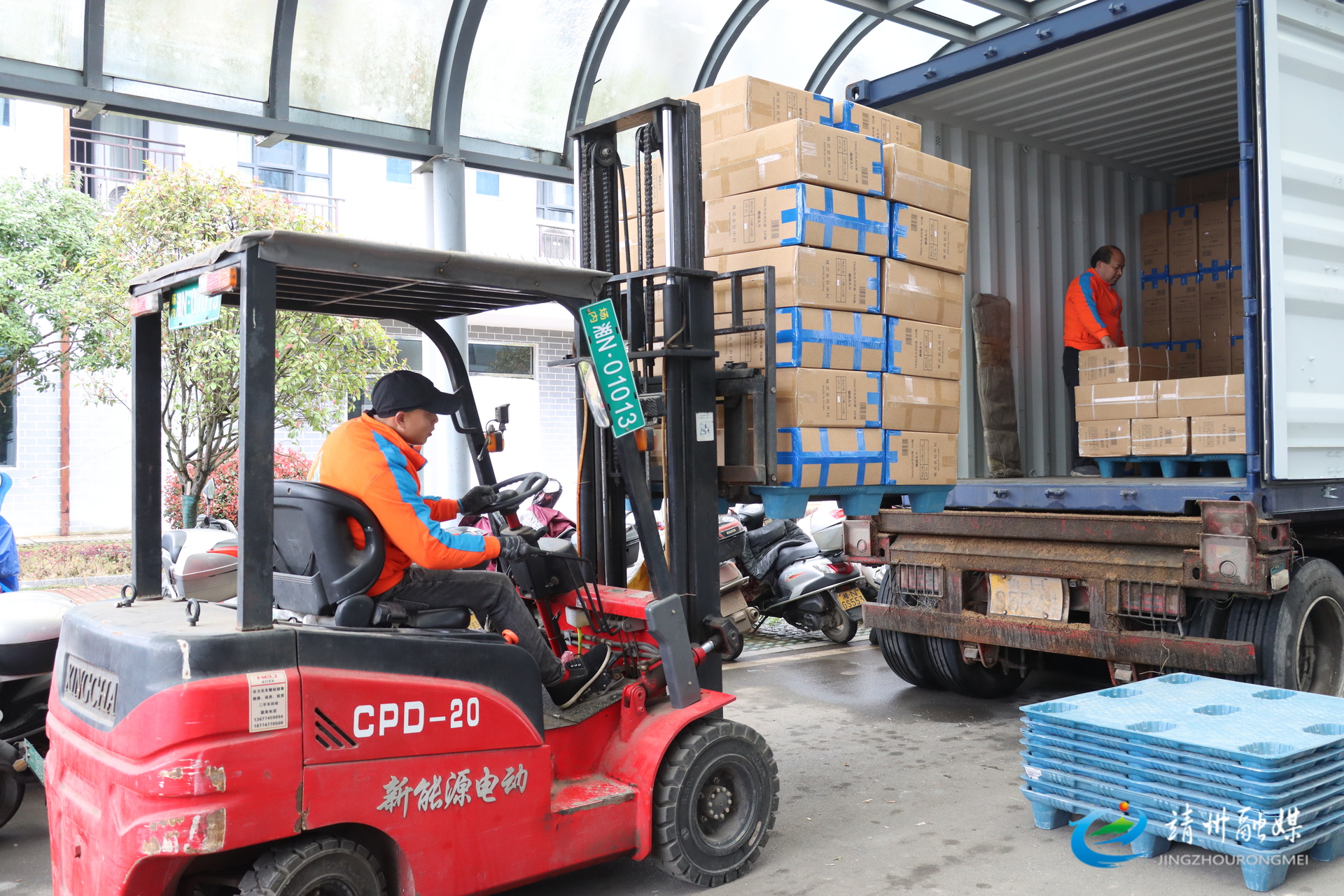 湖南辰铭竹木有限公司叉车司机正在忙碌地进行产品装车作业(许梦娟 摄)