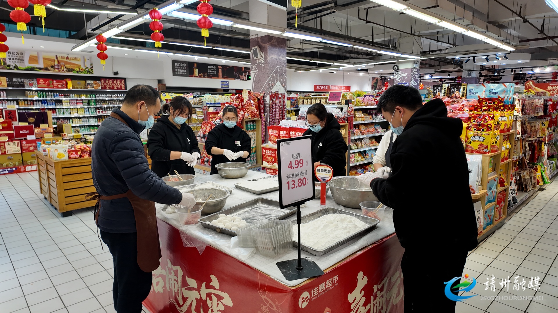 靖州某商超工作人员现场包制手工汤圆(夏源懋 摄)