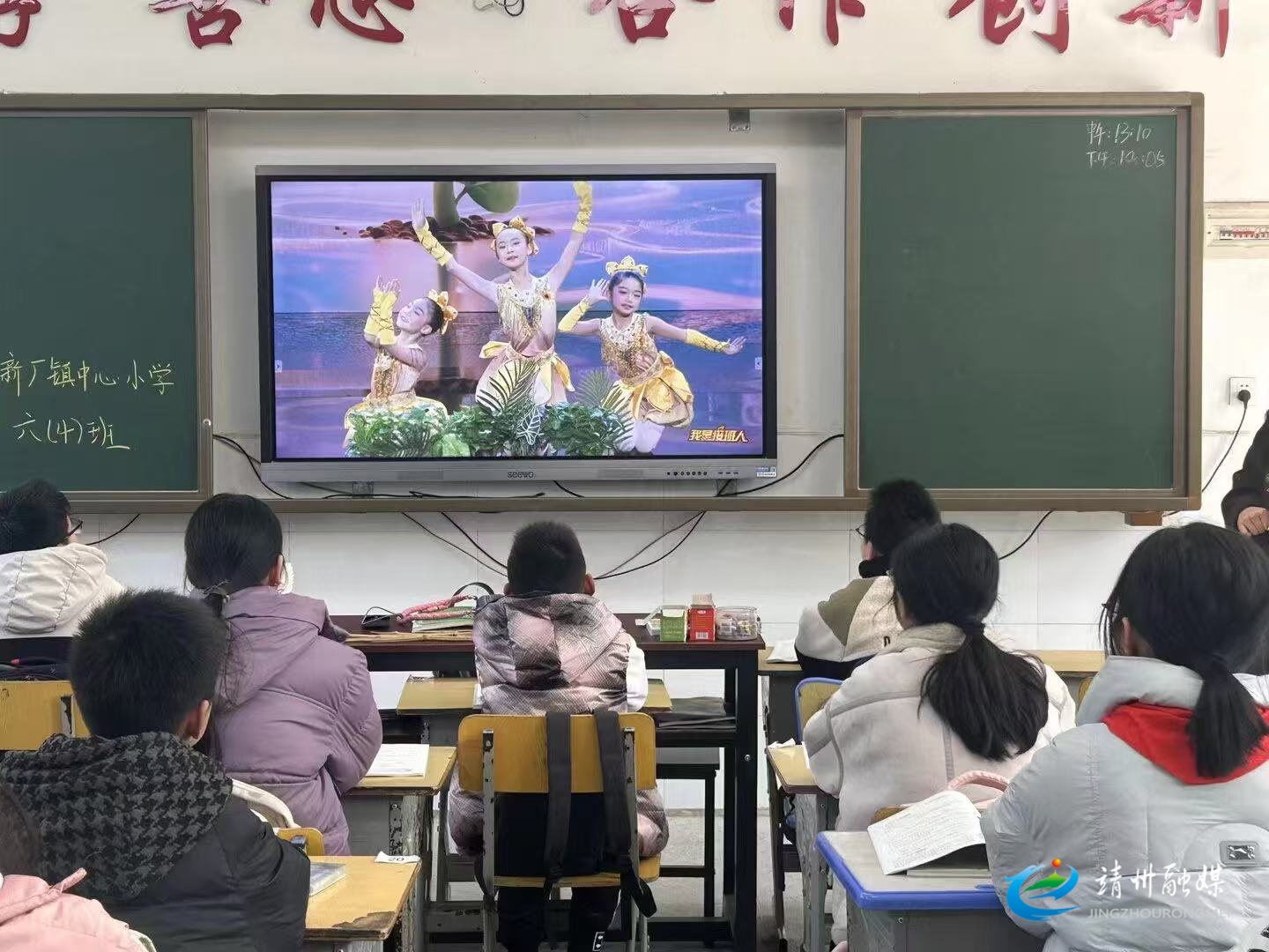 新厂镇中心小学六年级4班正在观看开学第一课(储益杰 摄)