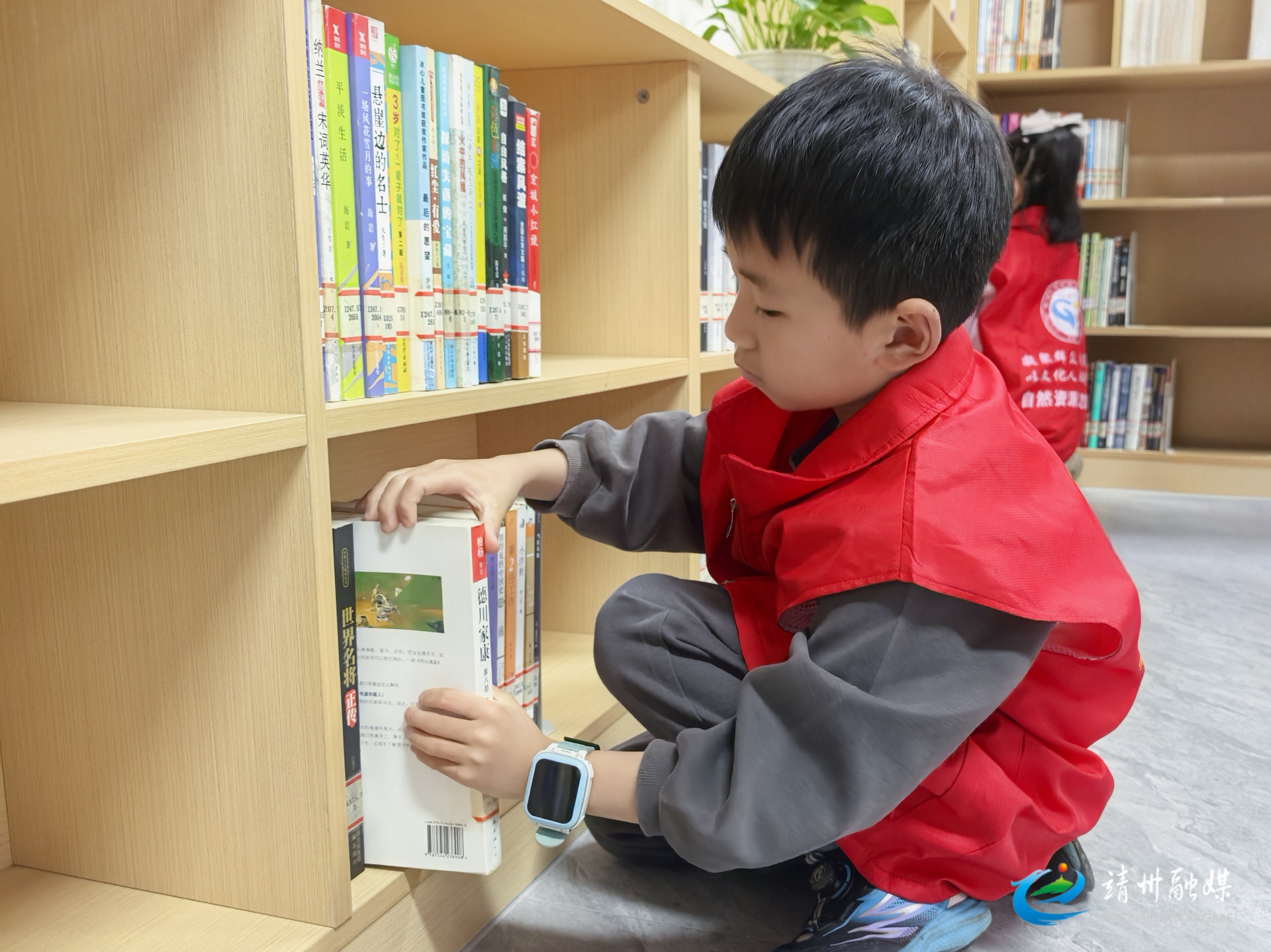 雷锋青少年正在整理书籍(钦苏芬 摄)
