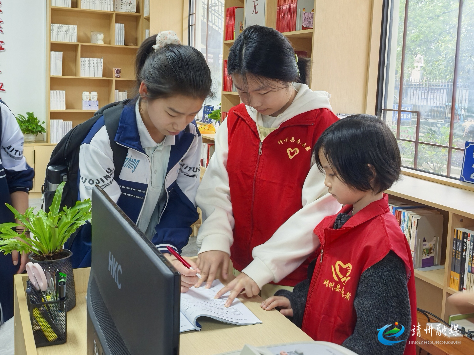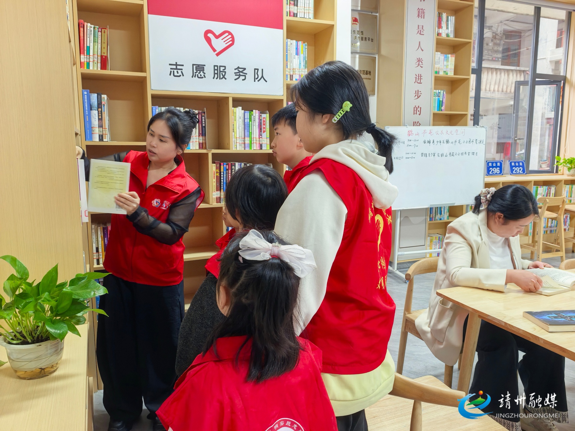 雷锋青少年正在引导借阅人员做好登记(钦苏芬 摄)