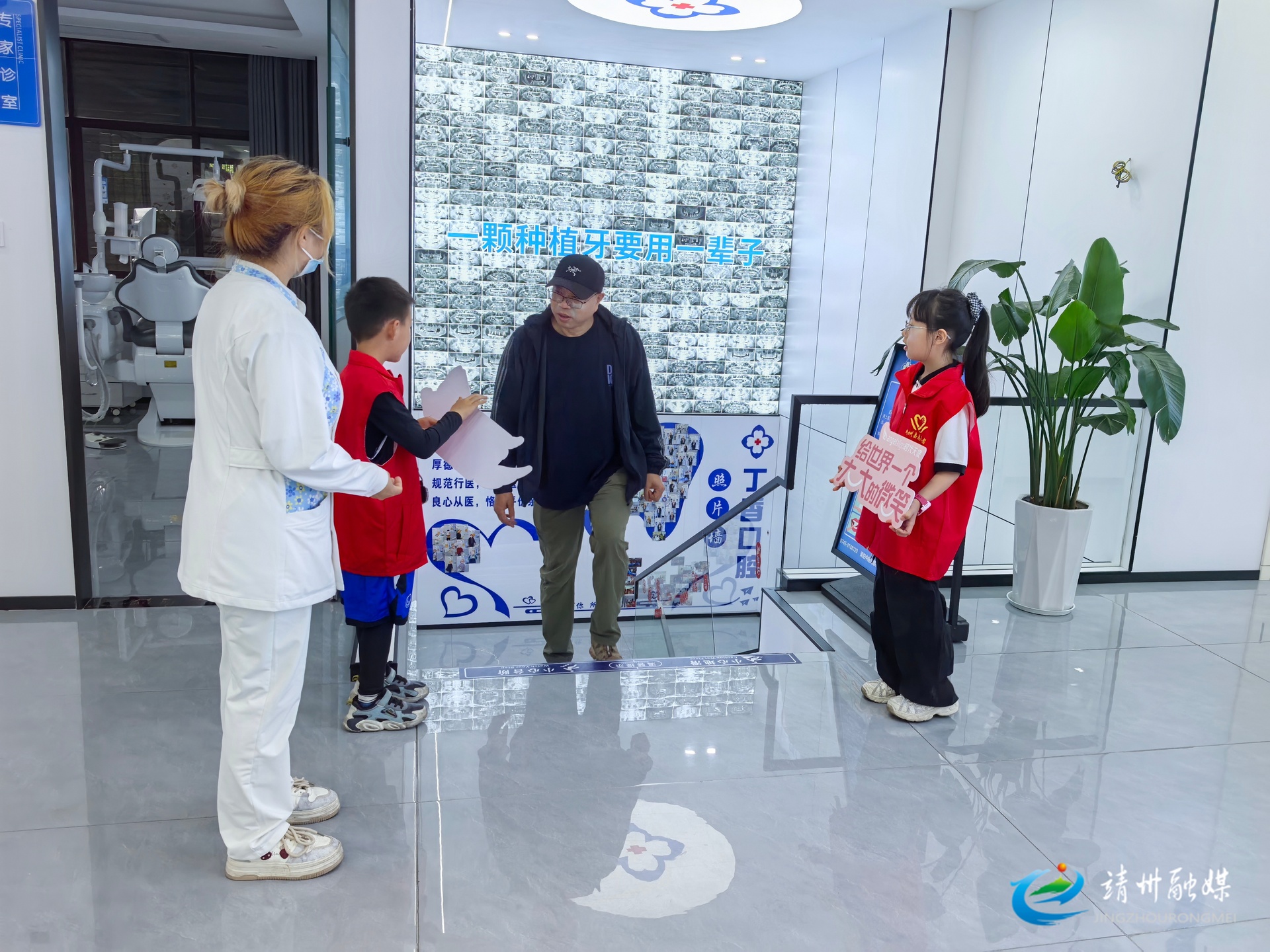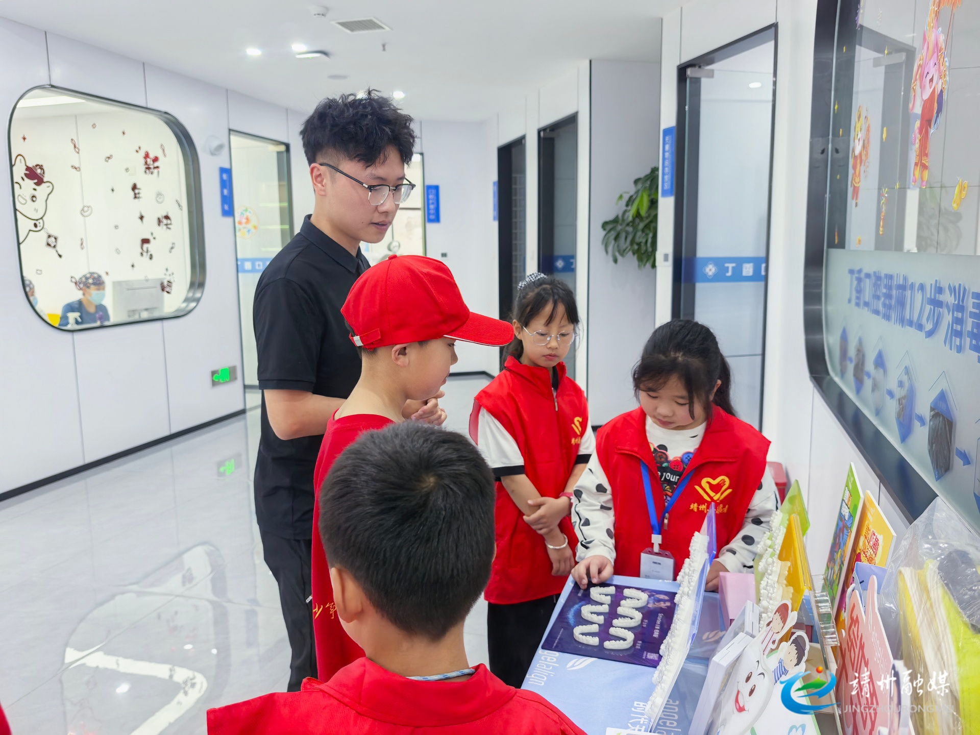 在靖州丁香口腔,医护人员通过趣味讲解、实操演示,为雷锋青少年普及牙齿护理、疾病预防等口腔保健知识,带领大家认识诊疗设备、熟悉诊室功能。孩子们化身“小小牙医”,为就诊群众提供引导服务、维护诊疗秩序,争当口腔健康志愿小卫士。