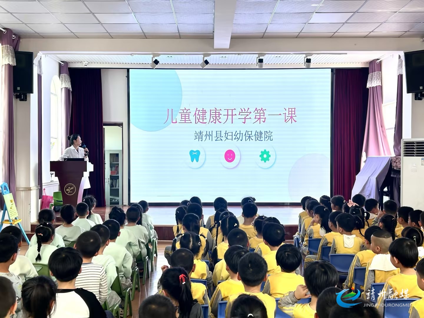 靖州融媒4月10日讯(通讯员 刘苗苗 陈超群 李柃荟 孙军秀)4月10日,靖州苗族侗族自治县幼儿园特邀县妇幼保健院医护团队走进校园,开展“呵护牙齿健康守护快乐成长”儿童口腔健康科普讲座。