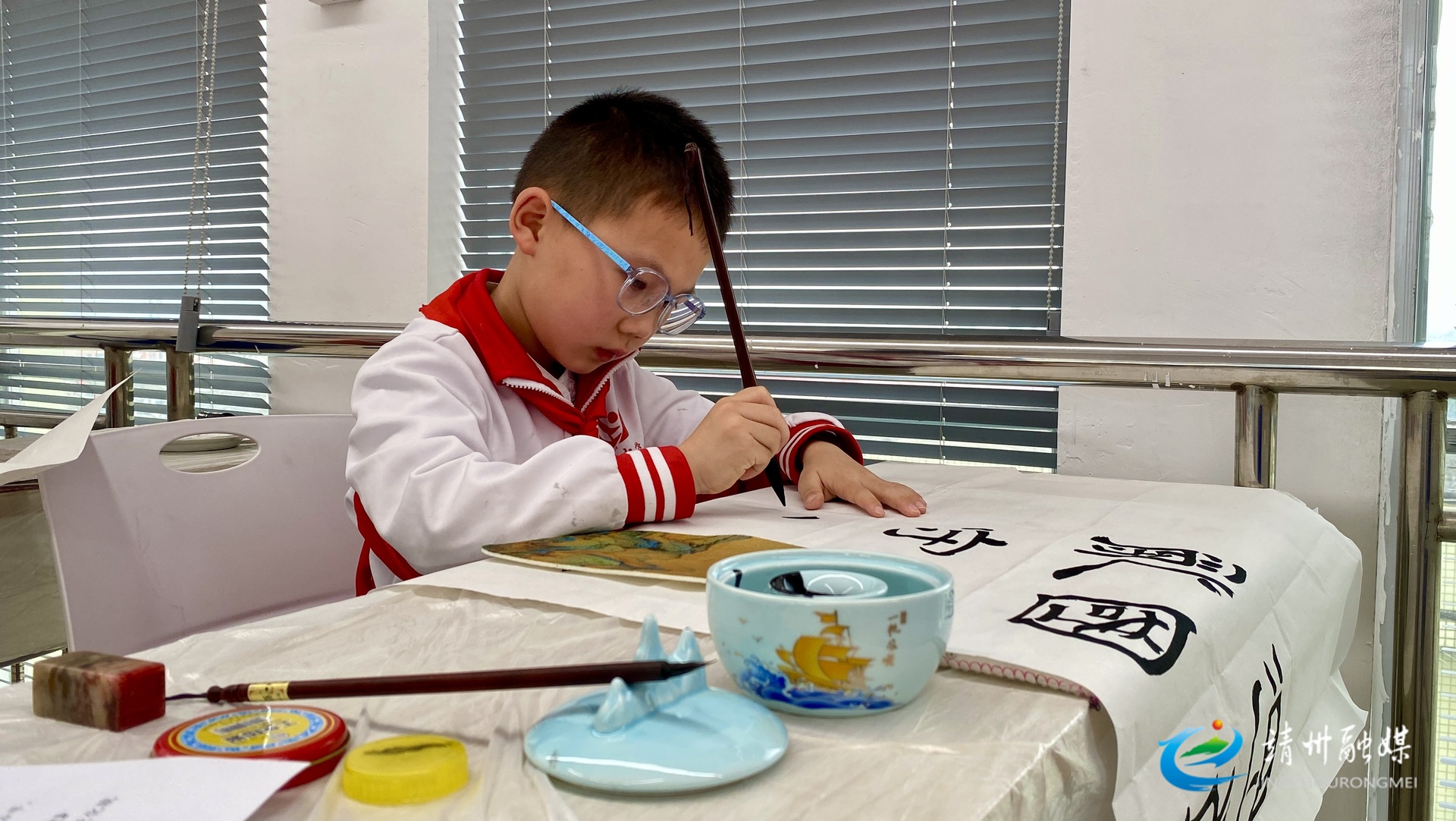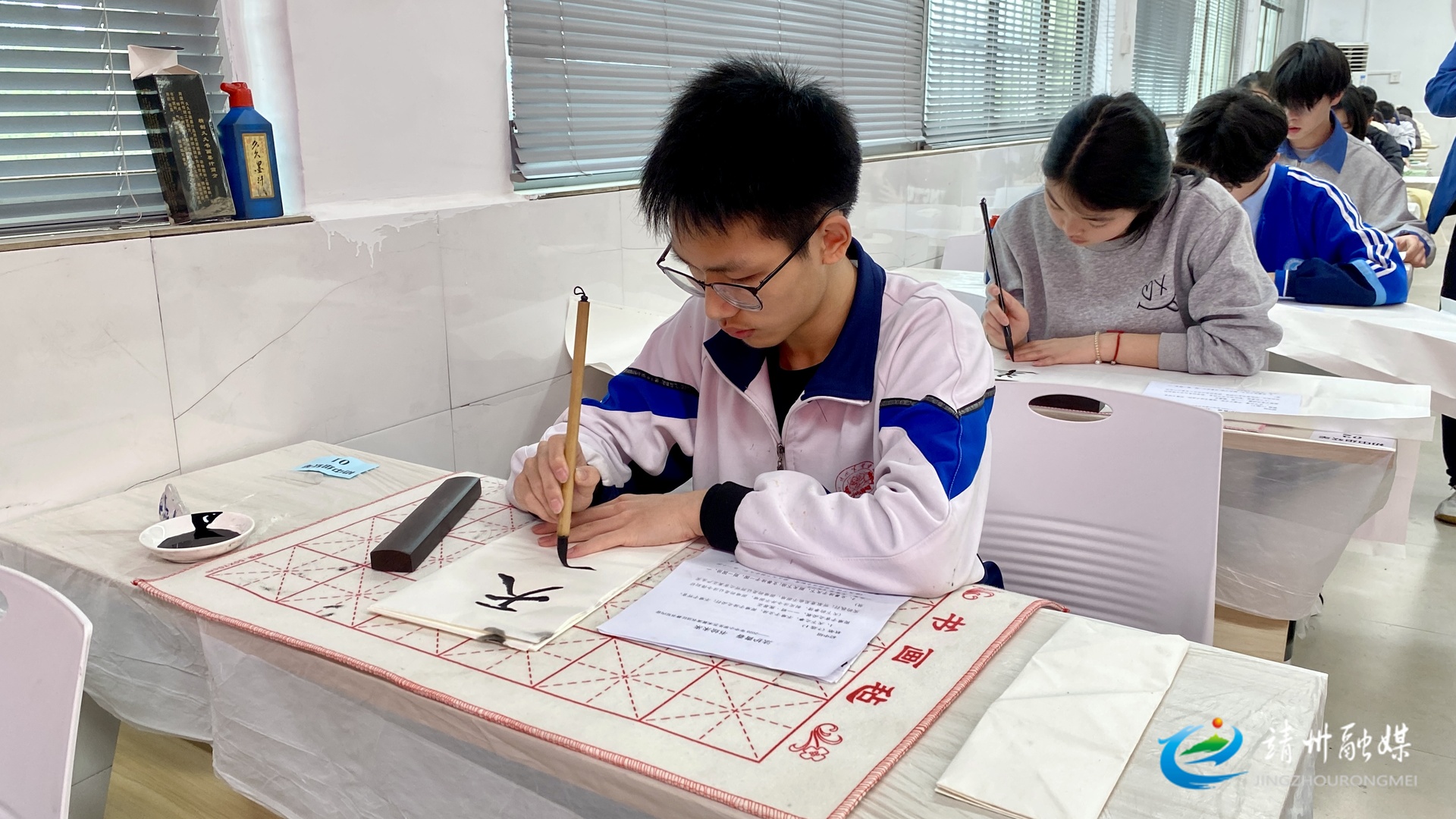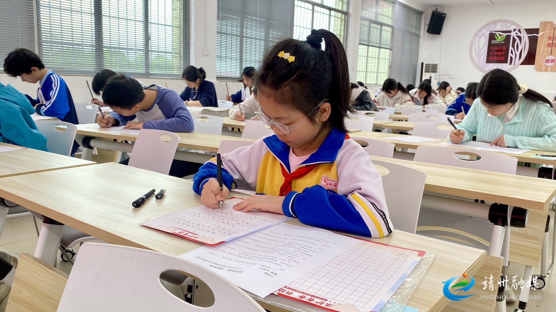 2026年靖州中小学艺术展演书法比赛现场(张秦 摄)