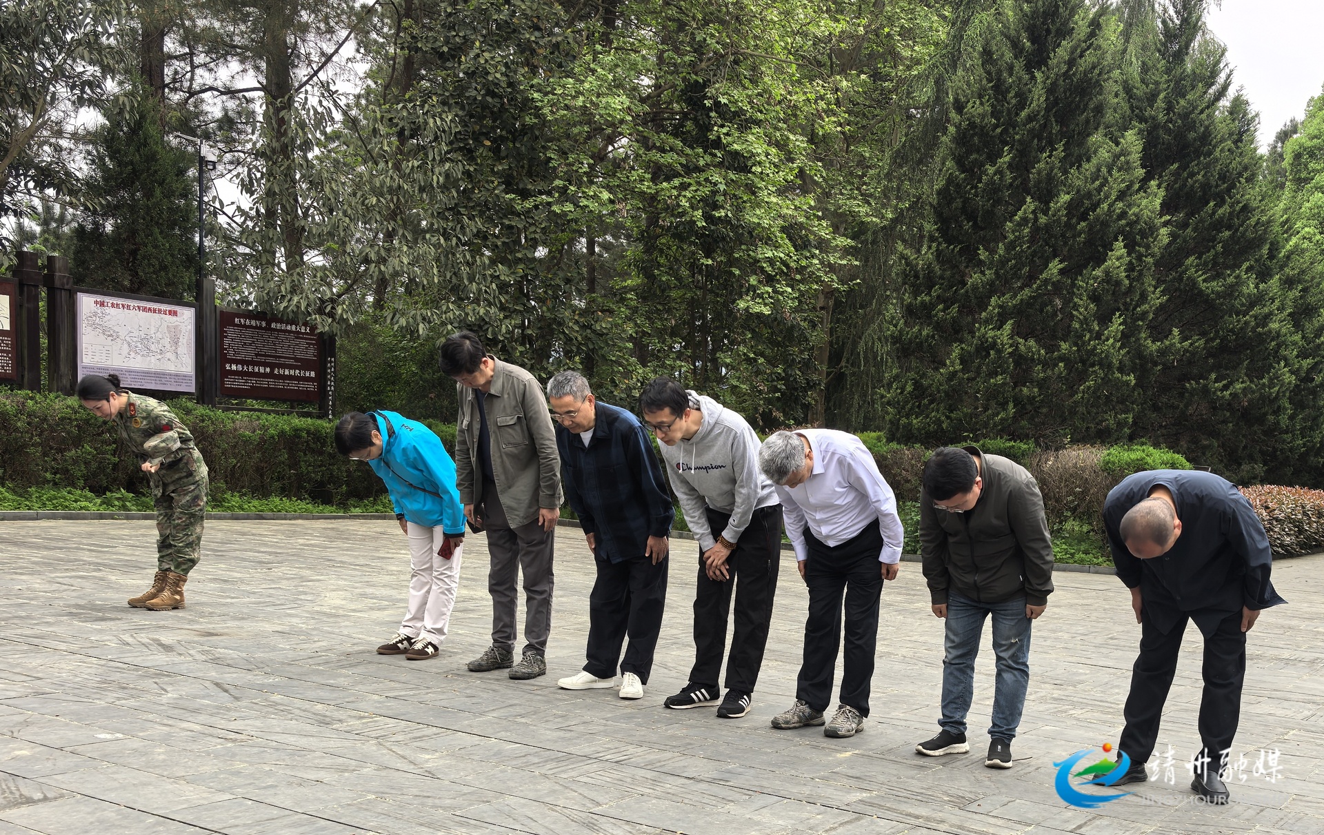 在新厂战斗纪念碑和烈士墓前,考察组敬献花篮,向革命先烈致以崇高敬意与深切缅怀。随后,大家还参观了工农红军清廉文化碑廊、长征诗词碑廊及新厂战斗指挥部旧址陈列室,详细了解红色遗存保护、展陈提质、红色教育开展等情况。
