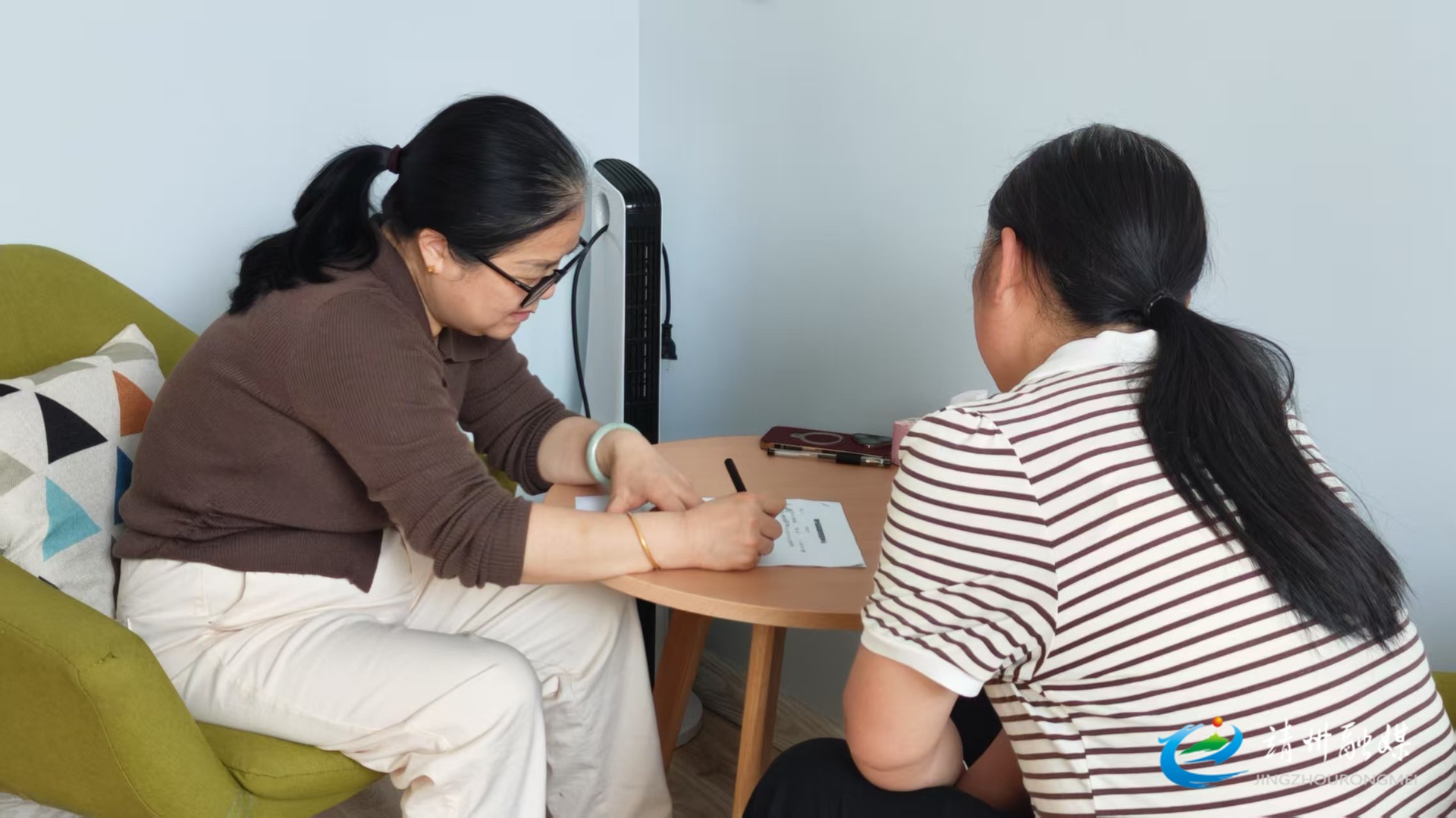 县妇联家庭教育指导服务中心教师正在了解家长状况(刘昊 摄)