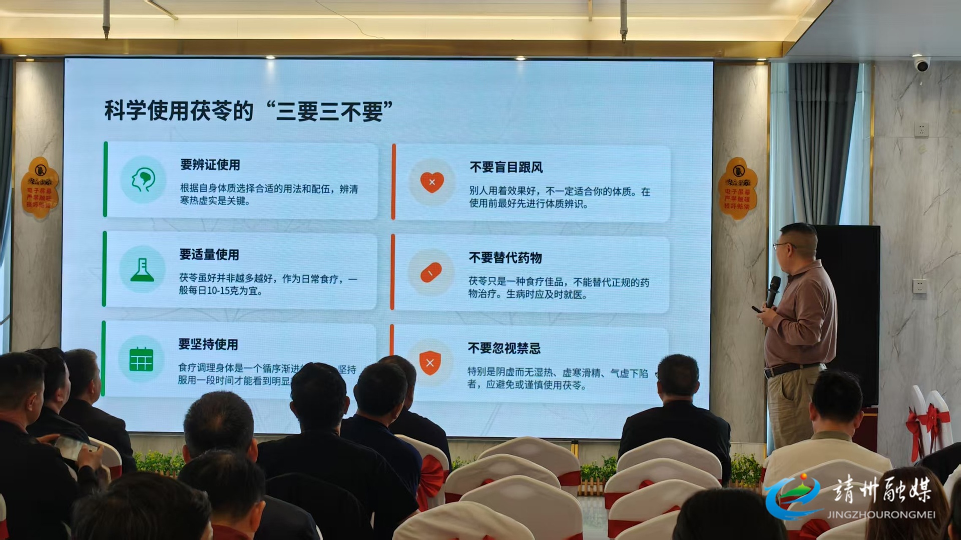 养生讲座环节,湖南农业大学教授彭国平、靖州康养文化传承研究学会会长吴定华分别围绕不同体质养生要点、茯苓养生功效开展专业分享,为现场嘉宾带来实用、权威的健康知识。
