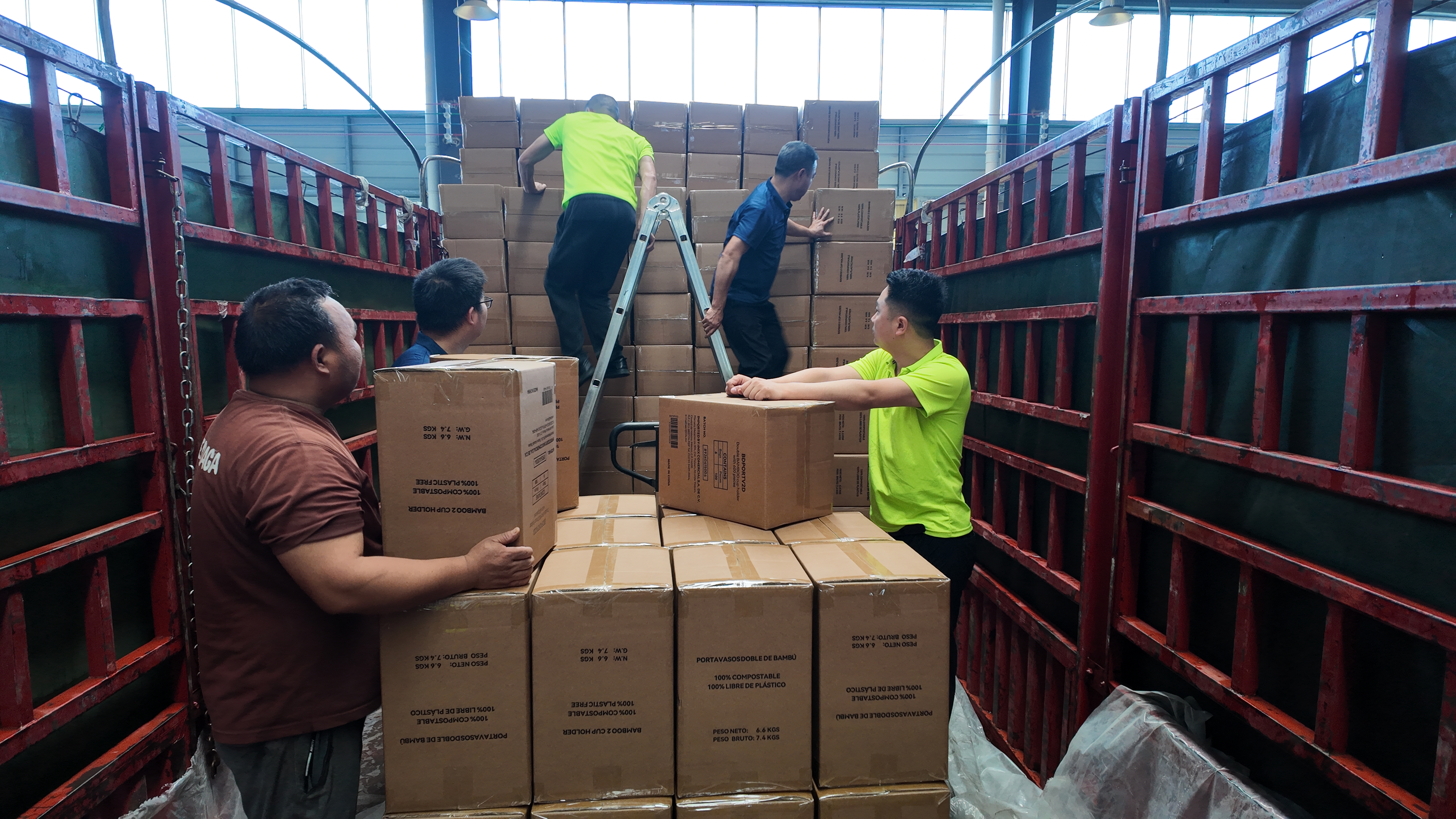 生产车间内,自动化生产线高速运转,从竹浆原料注入、模塑成型到烘干定型、裁切分拣,全流程智能有序;工人们规范操作设备,对产品进行外观、承重、规格等全方位核验,确保零瑕疵出海。仓库内,叉车来回穿梭、装卸有序,全力保障货物顺利发运。